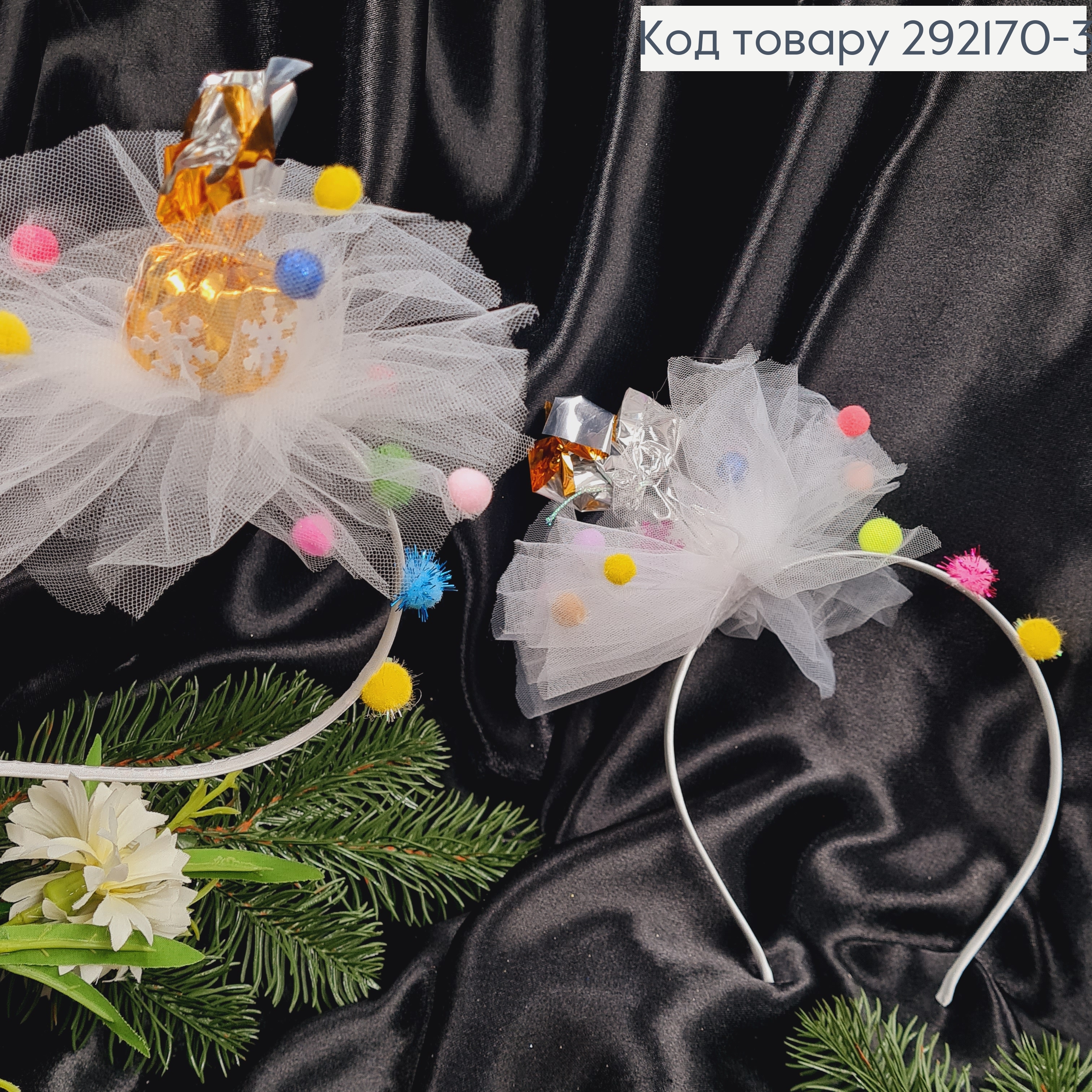 Обруч металлический Конфетка со снежинкой, с фатином, ручная работа, Украина.