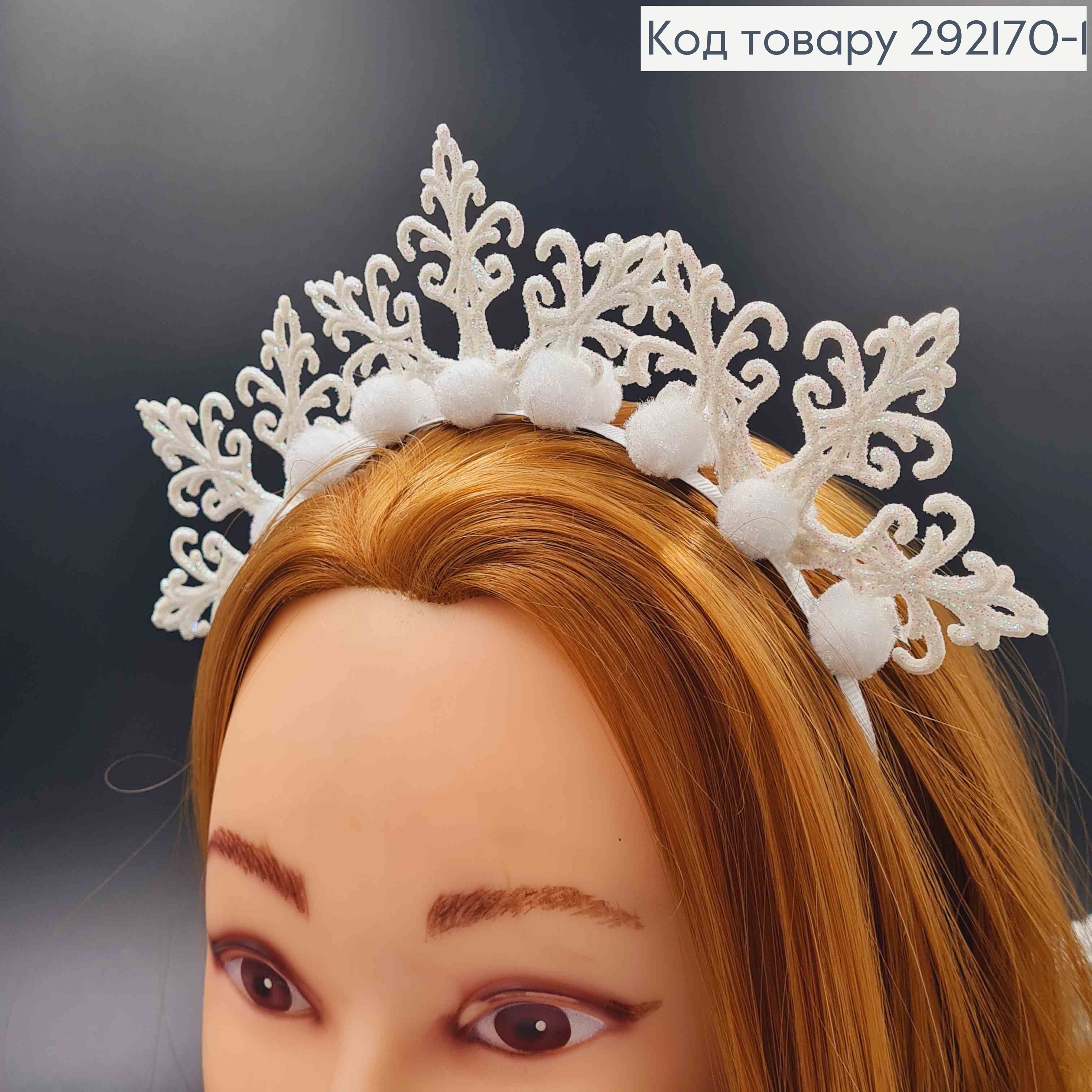 Обруч металл "Три полснежинки" с Помпонами, высокая точка 8 см, ручная работа, Украина 691181 фото