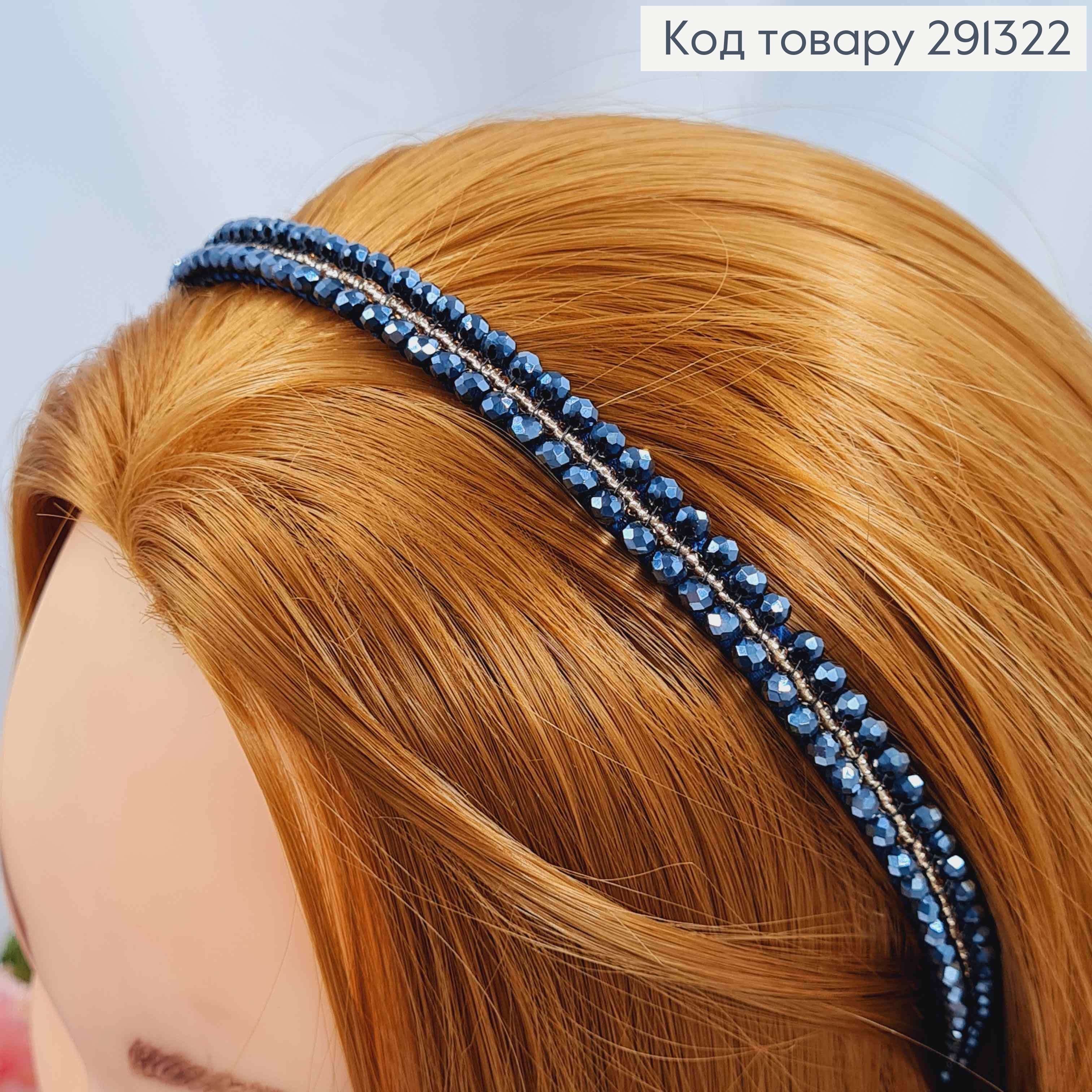 Обруч металл, СИНЕГО цвета, плетеный Камешками, ширина 1,5см 292405 фото