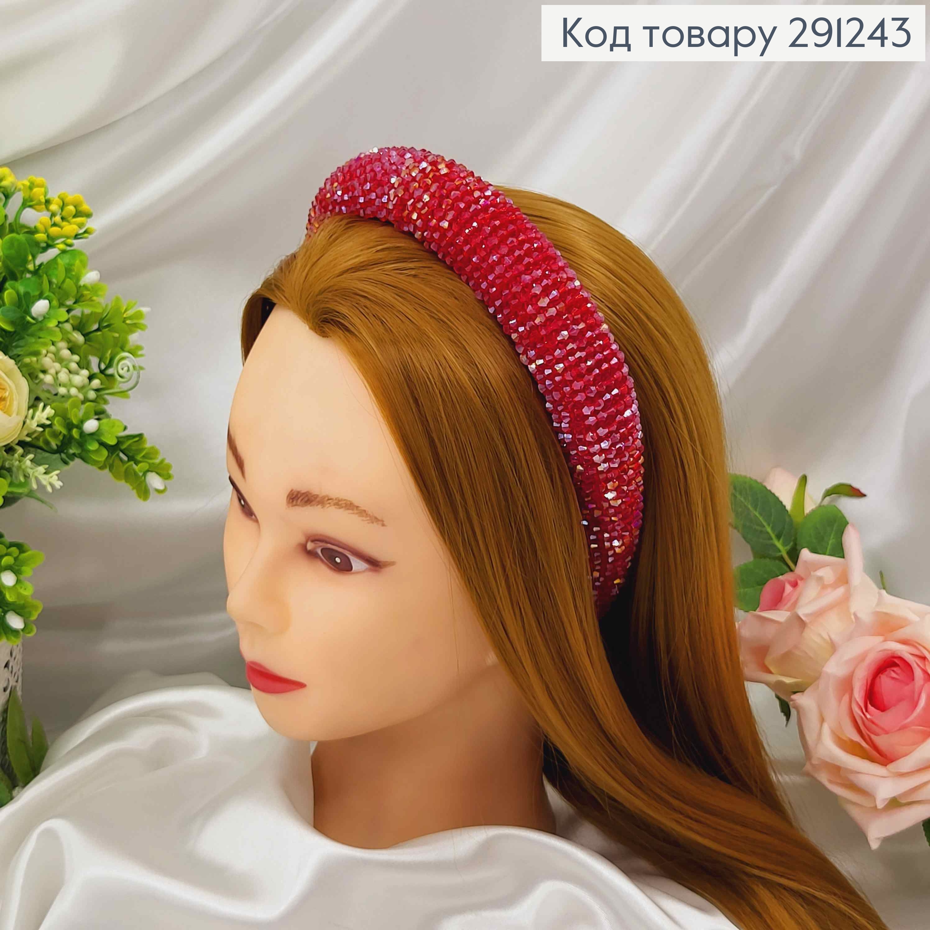 Обруч модный плетеный стиклярус, КРАСНЫЙ ПЕРЛАМУТРНЫЙ цвет, ширина 3,5см