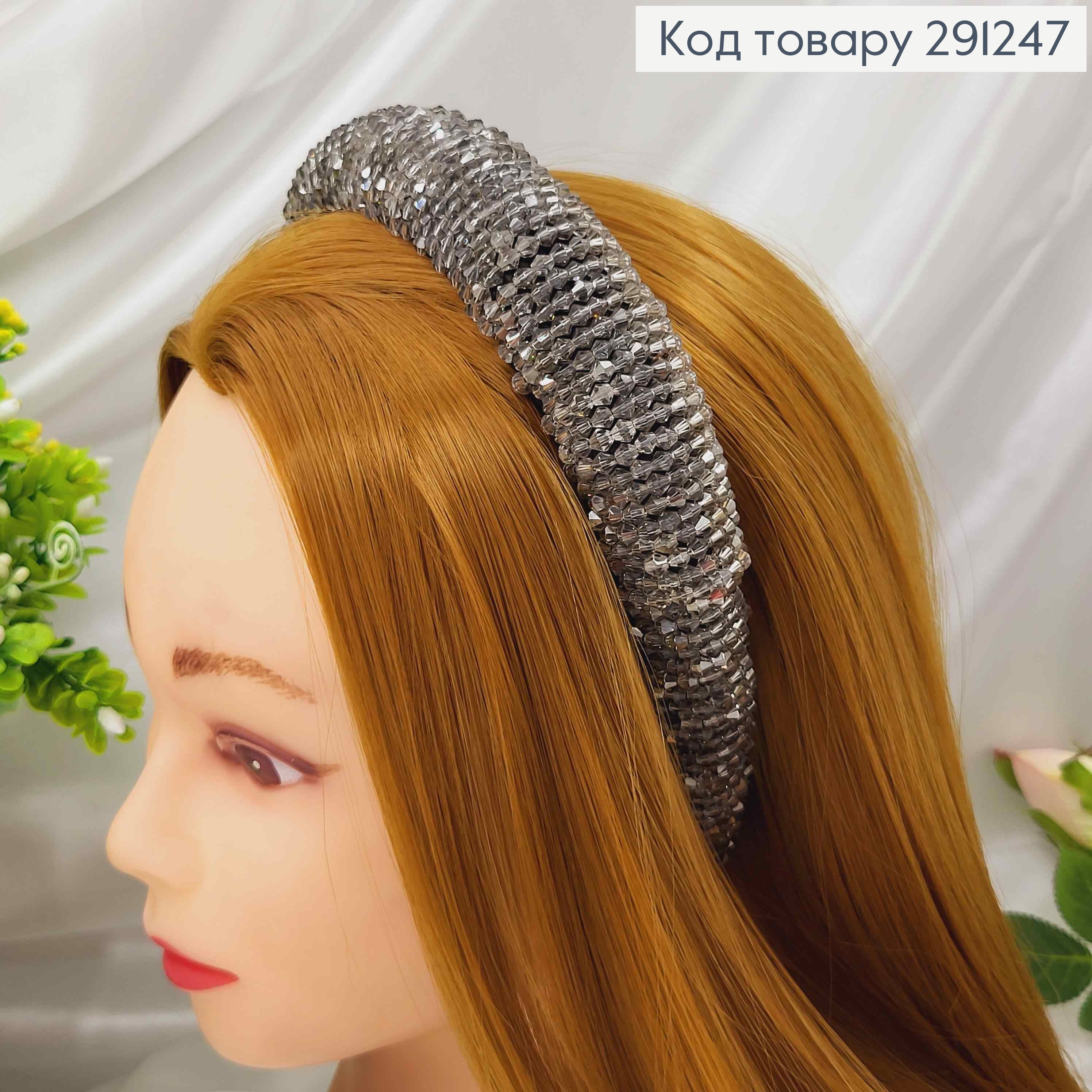 Обруч модный плетеный стиклярус, СЕРЫЙ цвет, ширина 3,5см.
