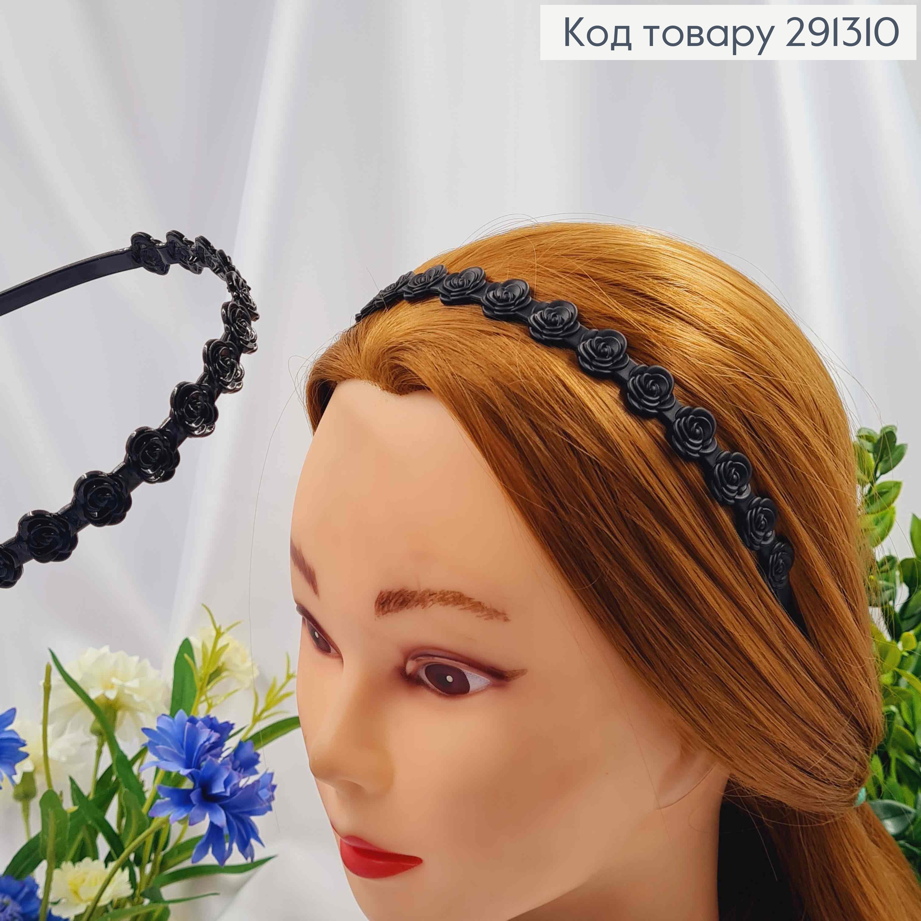 Обруч пластик 1,5см, Троянди, матовий і глянцевий чорного кольору