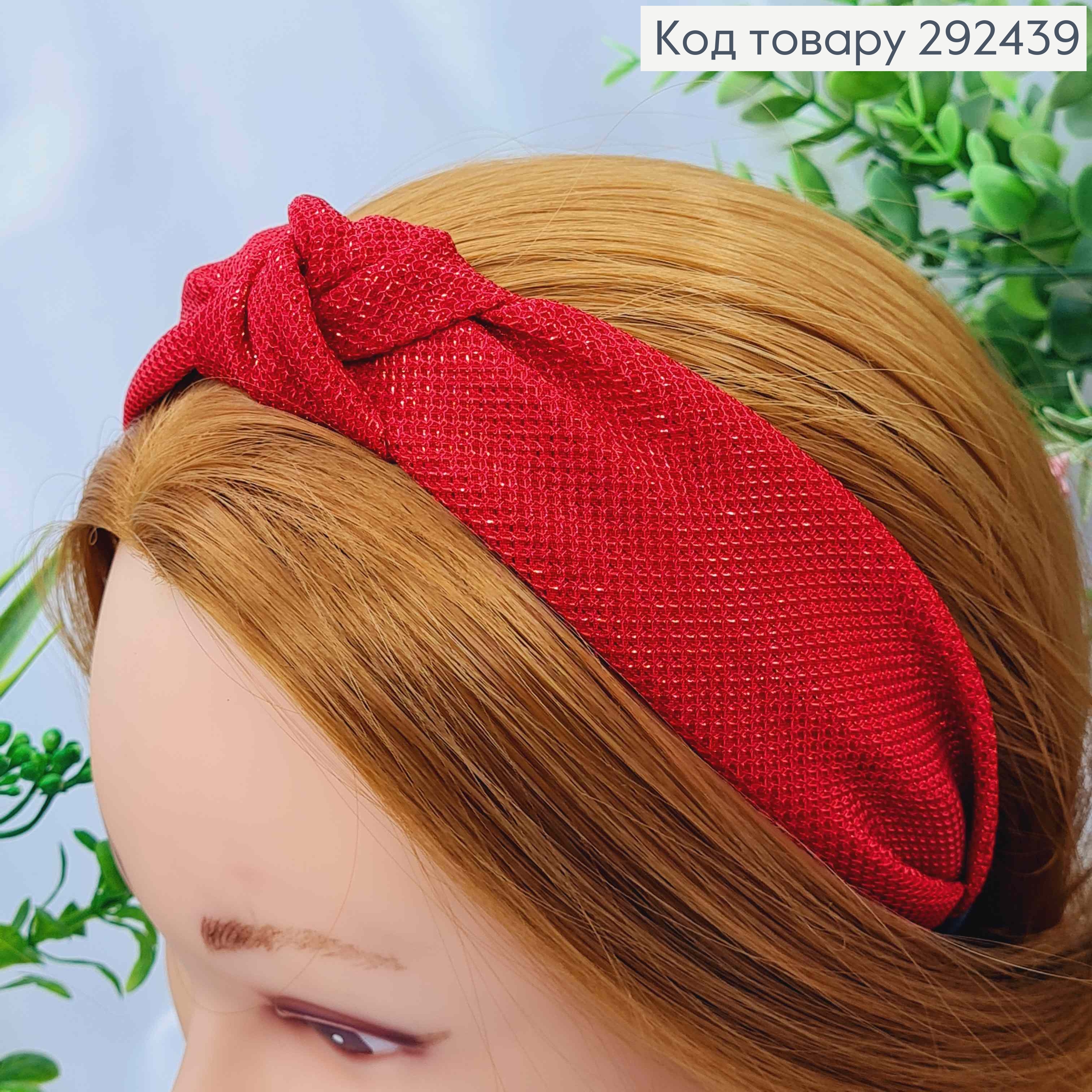Обруч пластик, Чалма, в ткани с люрексом, Красного цвета, 3см, ручная работа, Украина.