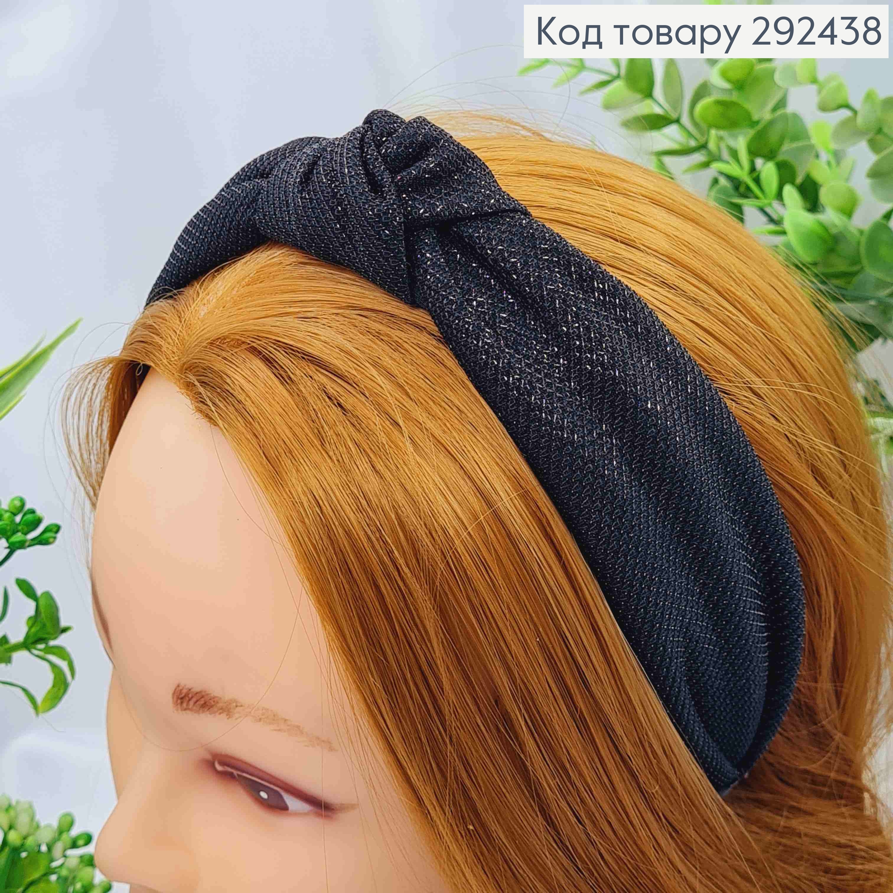Обруч пластик, Чалма, в ткани с люрексом, Черного цвета, 3см, ручная работа, Украина.