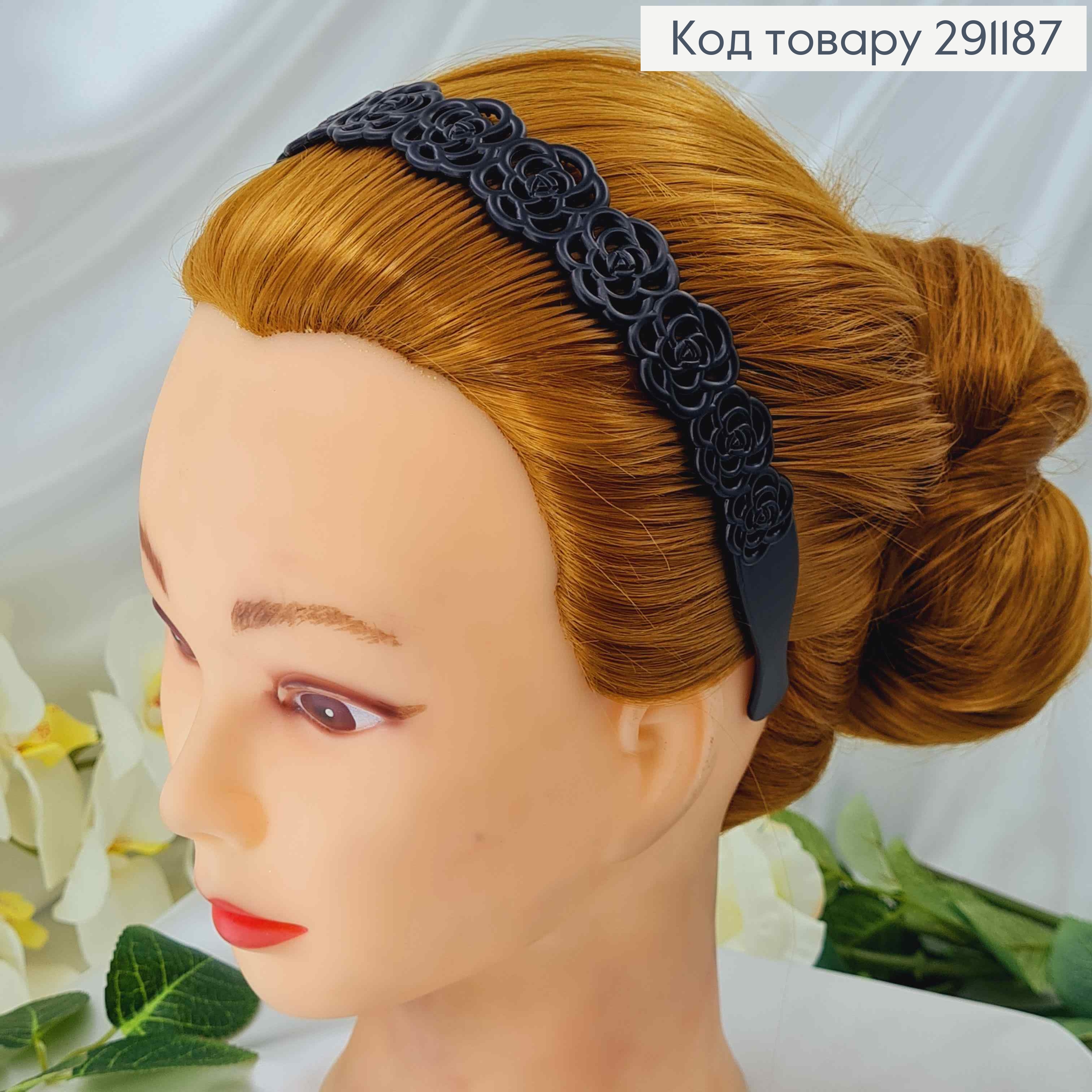 Обруч пластик черный, с резьбой розами, матовые/глянцевые в ассорт.