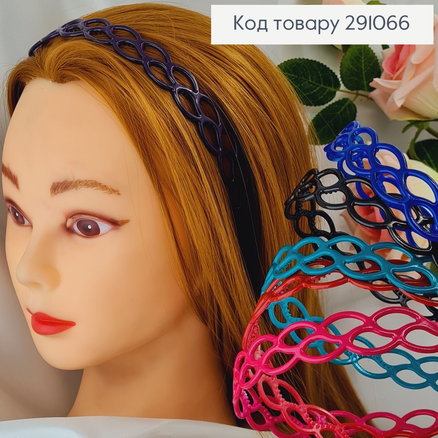 Обруч пластик матовый, "Цепочка" с расческой, 0,9см, Пастельные цвета в ассортименте. 291367 фото