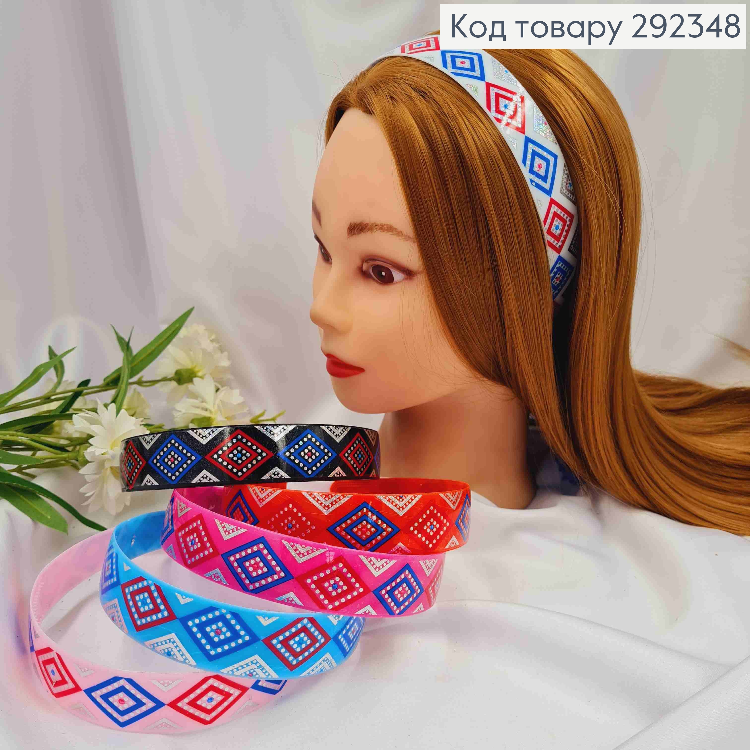 Обруч пластик, украшенный рисунком Разноцветные ромбы с блеском, 2,5см, Цвета в ассортименте