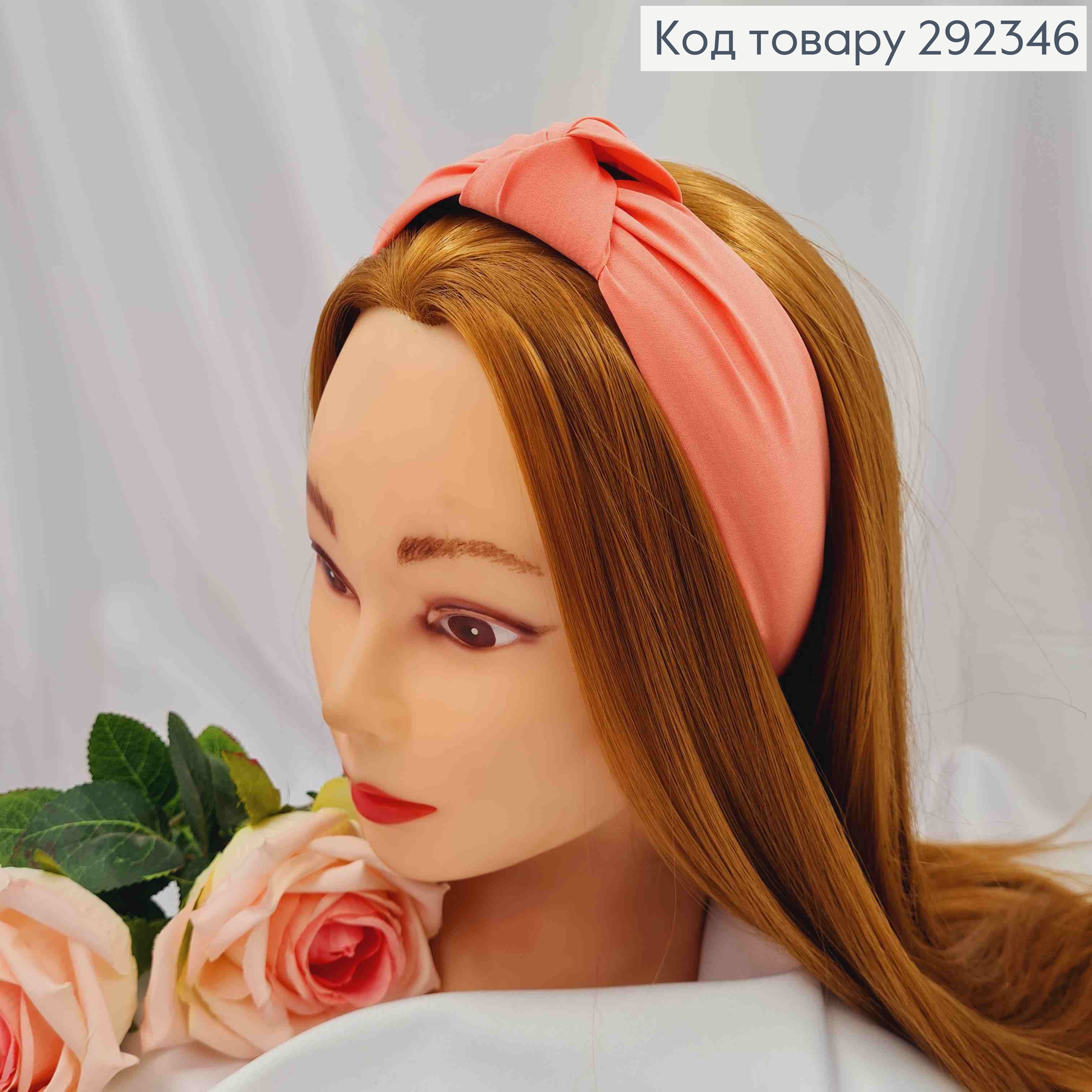 Обруч пластик, Чалма, в ткани с люрексом, Пудрового цвета, 3см, ручная работа, Украина. 292436 фото