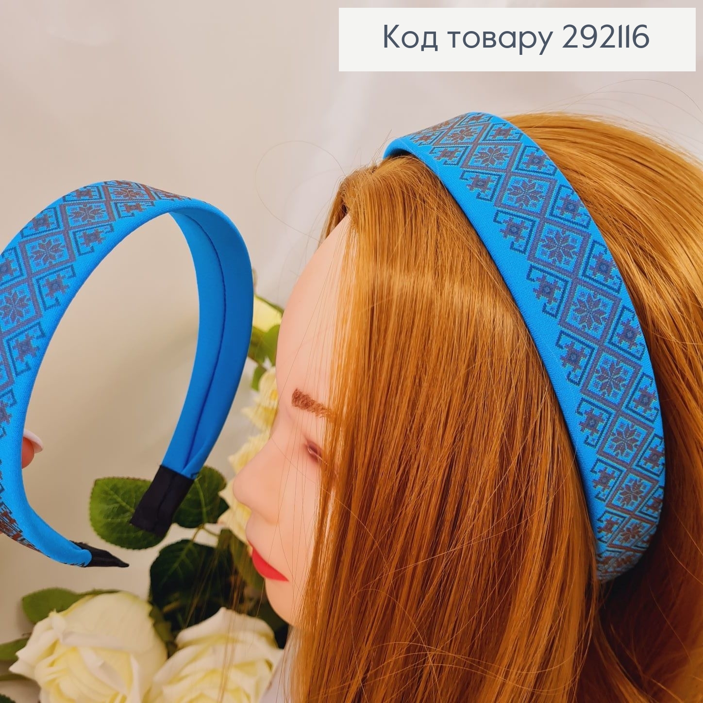 Обруч пластик в ткане, украинский мотив (синий с голубым), изготовитель Украина (ручная работа)