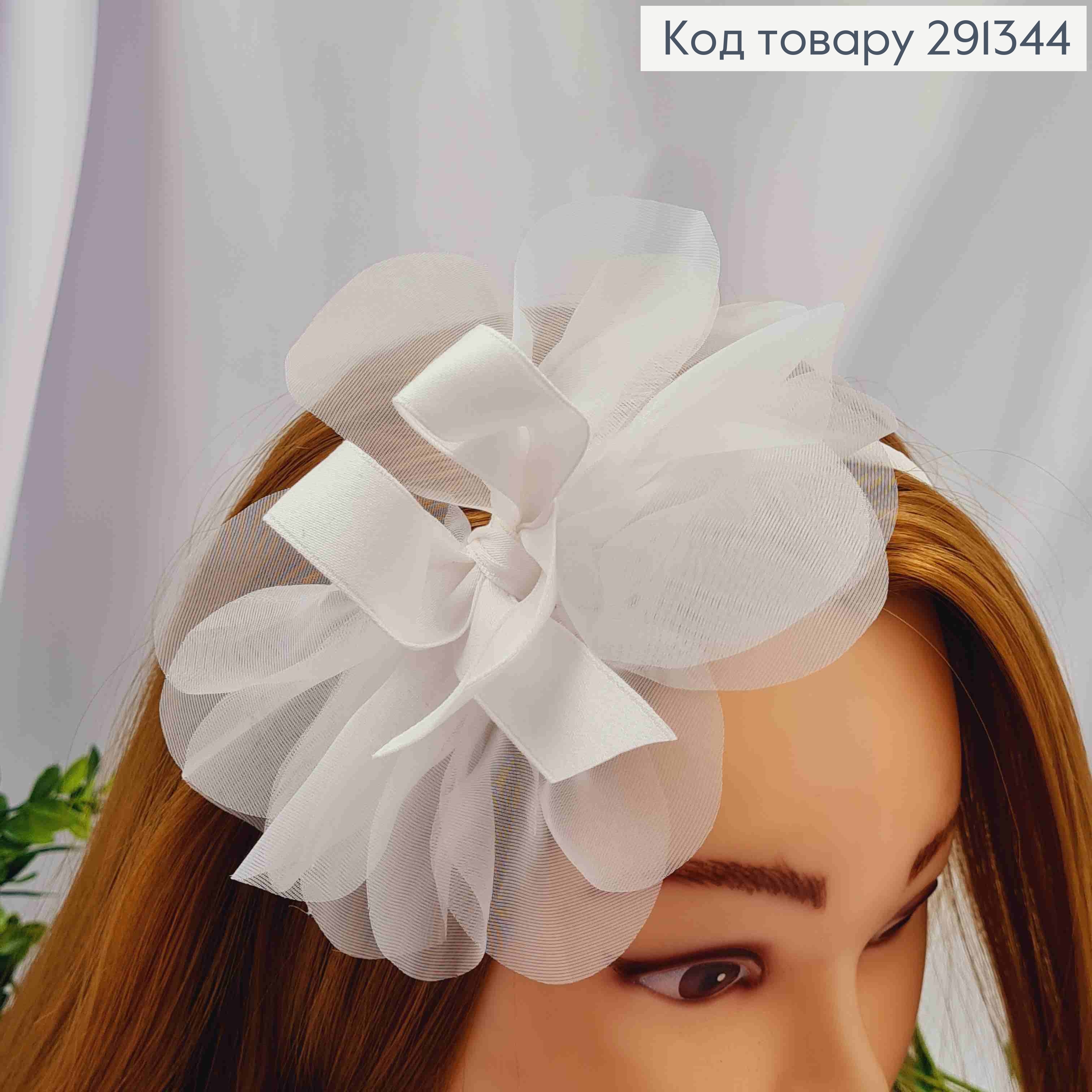 Обруч пластик с Ажурным-Бантиком из органзы, Белого цвета