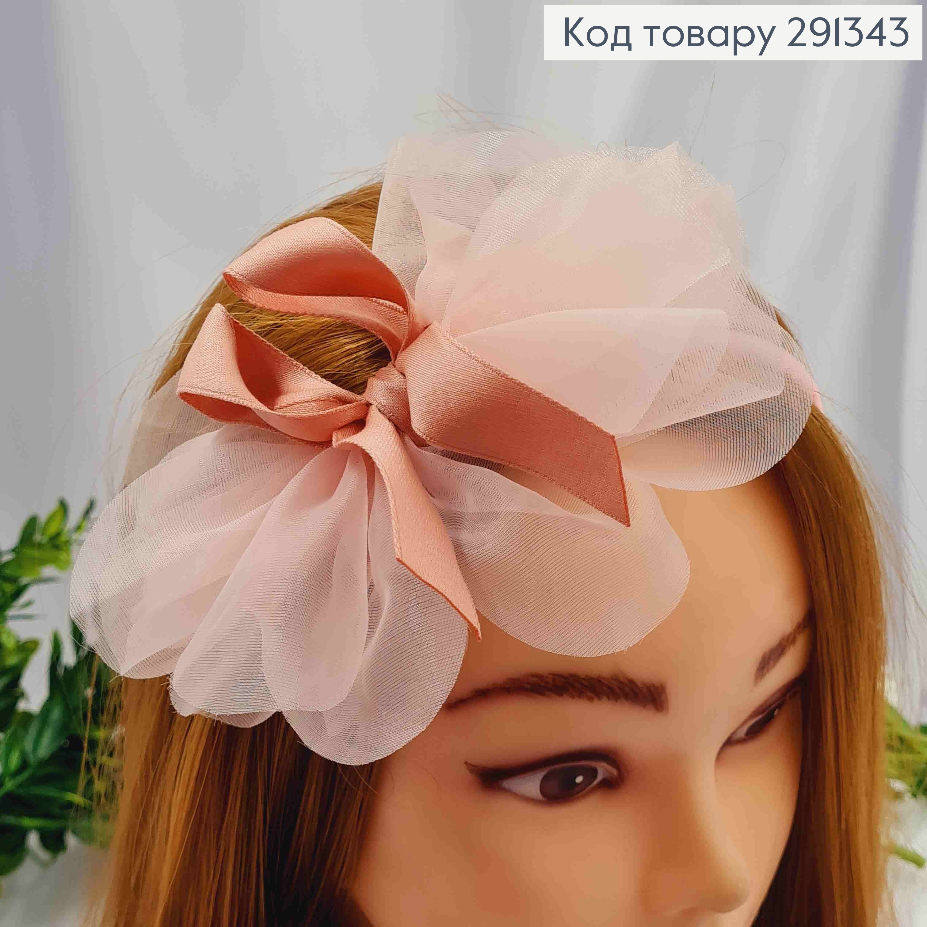 Обруч пластик с Ажурным-Бантиком из органзы, Персикового цвета