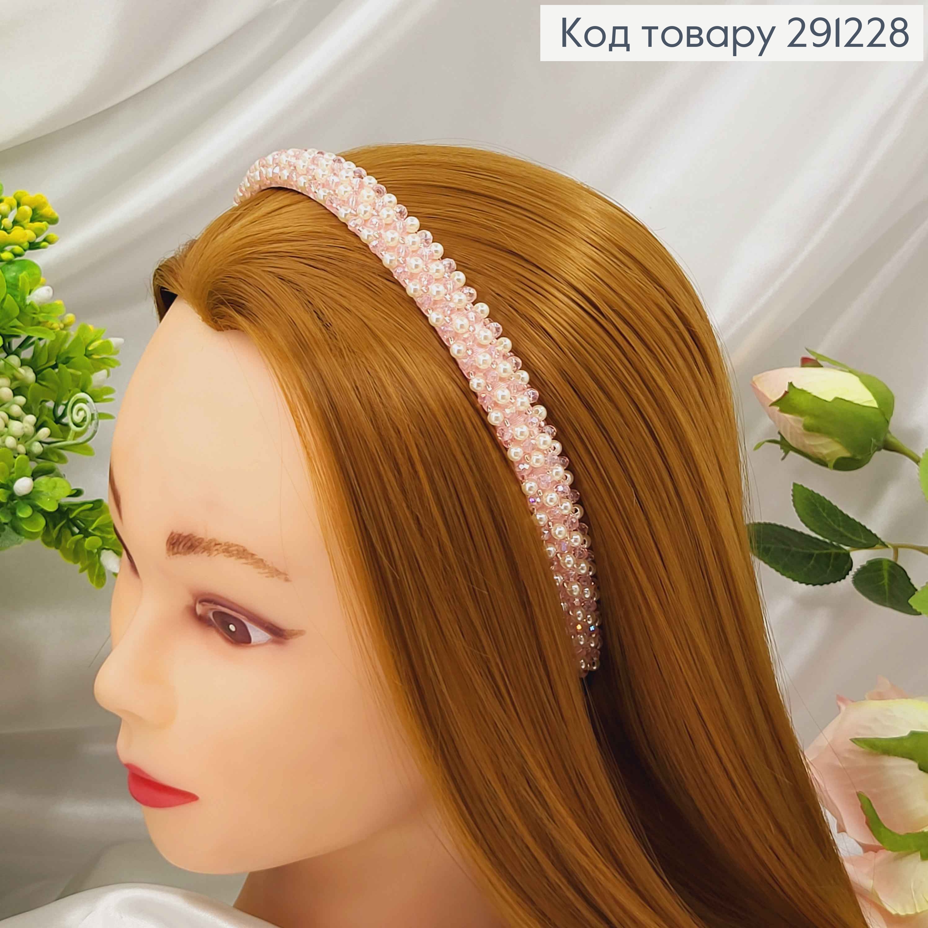Обруч металл, ПУДРОВОГО цвета, плетеный Камешками, ширина 1,5см. 292402 фото
