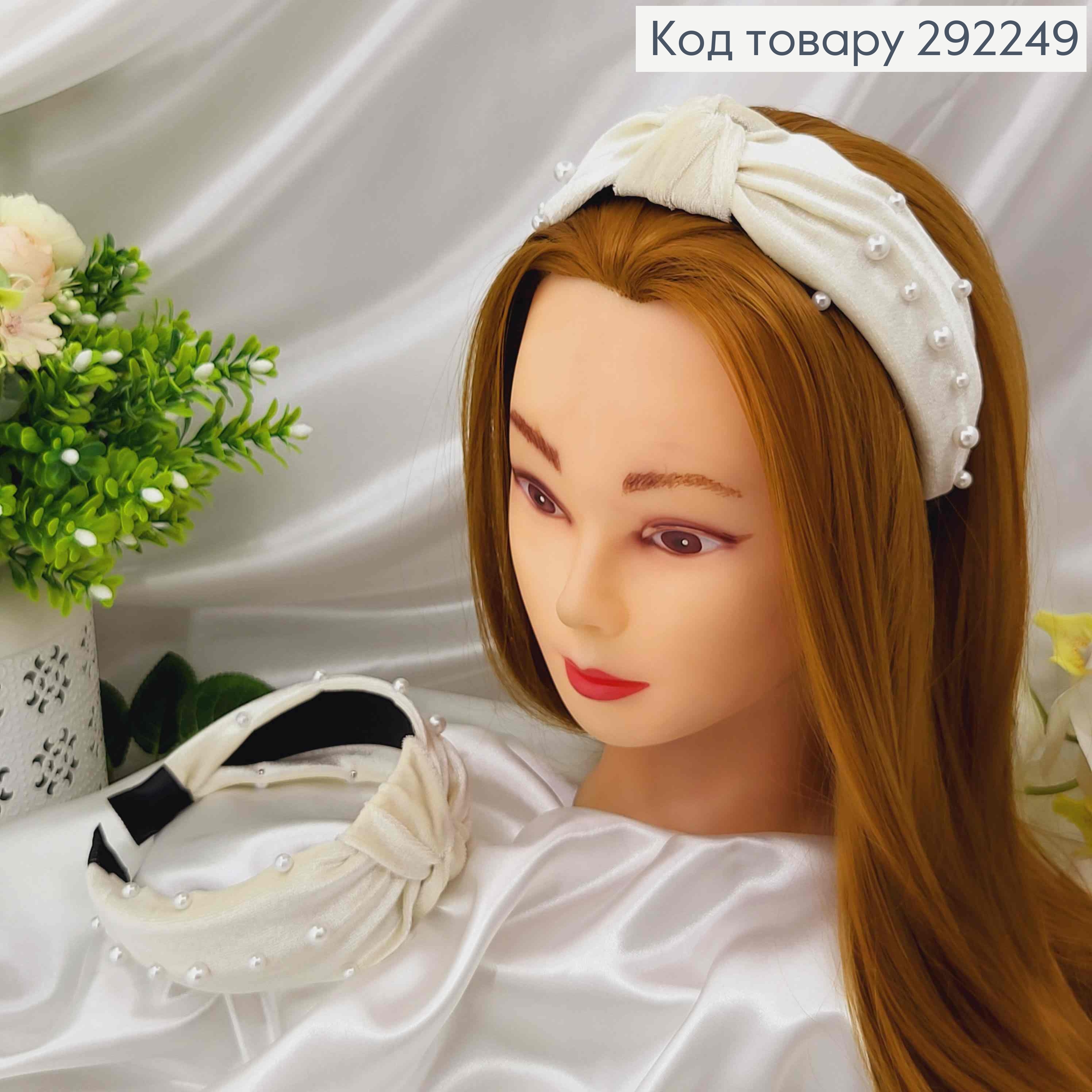 Обруч велюр Чалма с бусинками, цвет АЙВОРИ, ручная работа, Украина