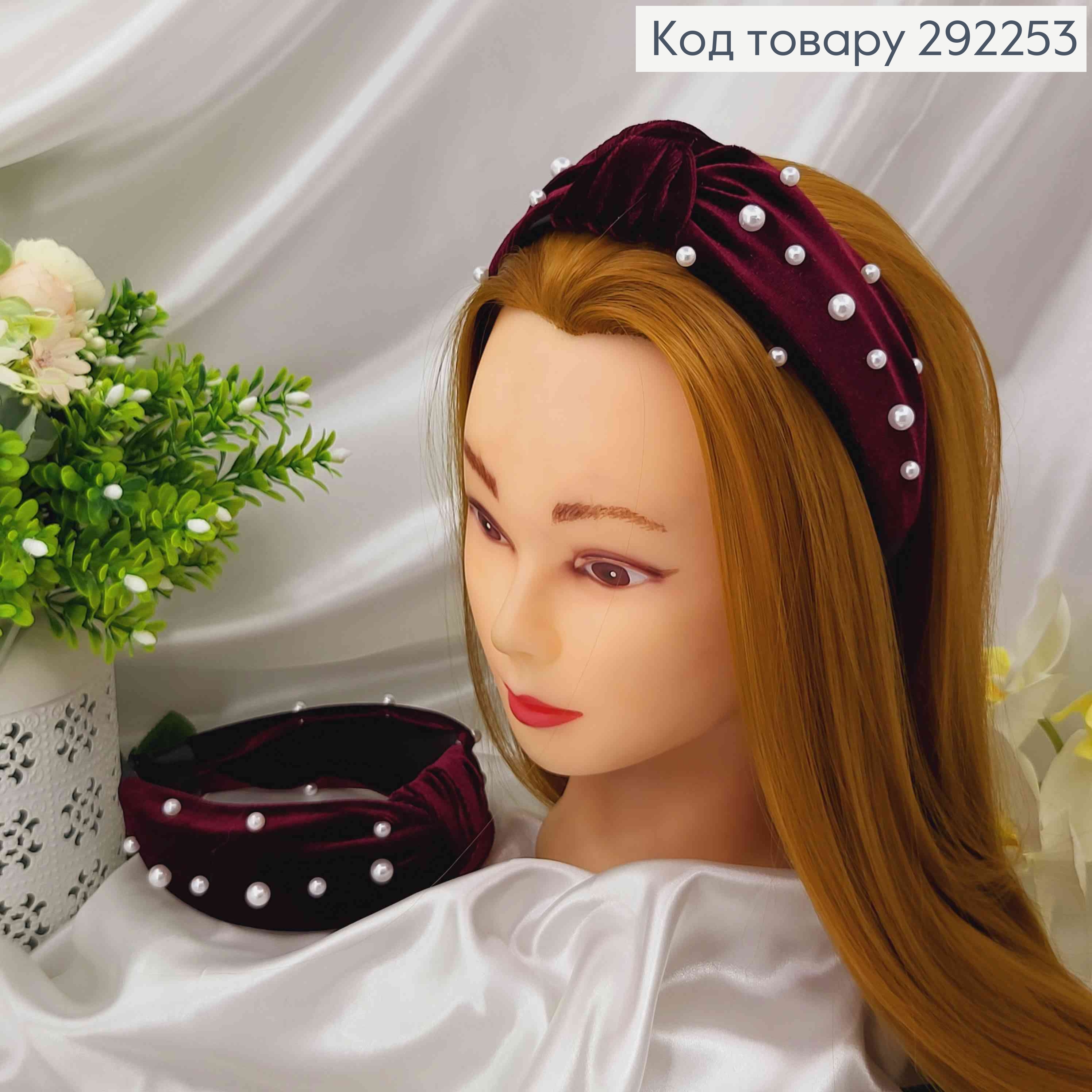 Обруч велюр Чалма с бусинками, цвет БОРДОВЫЙ, ручная работа, Украина