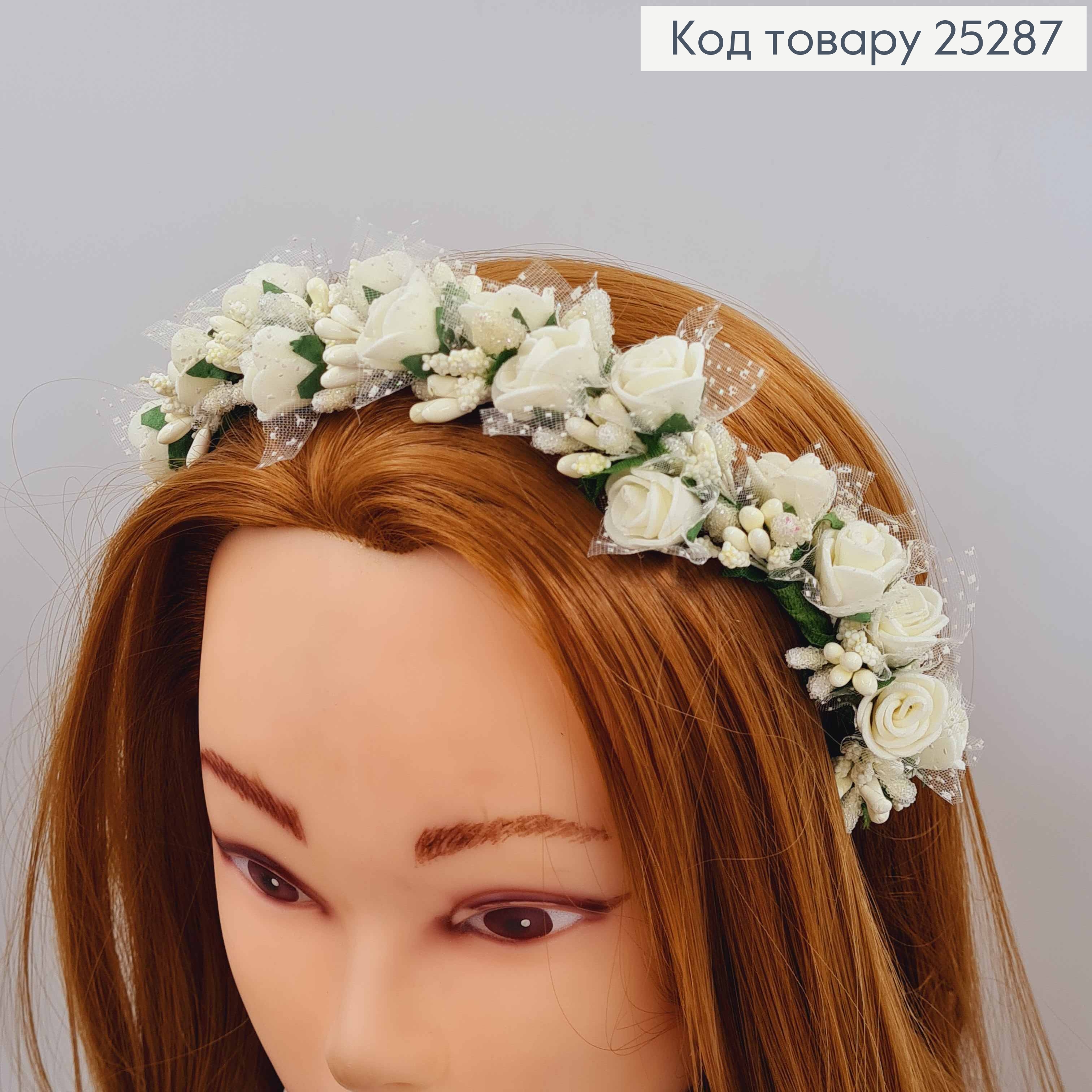 Обруч - венчик розы цвета АИВОРИ с фатином, основа - металл, ручная работа, Украина