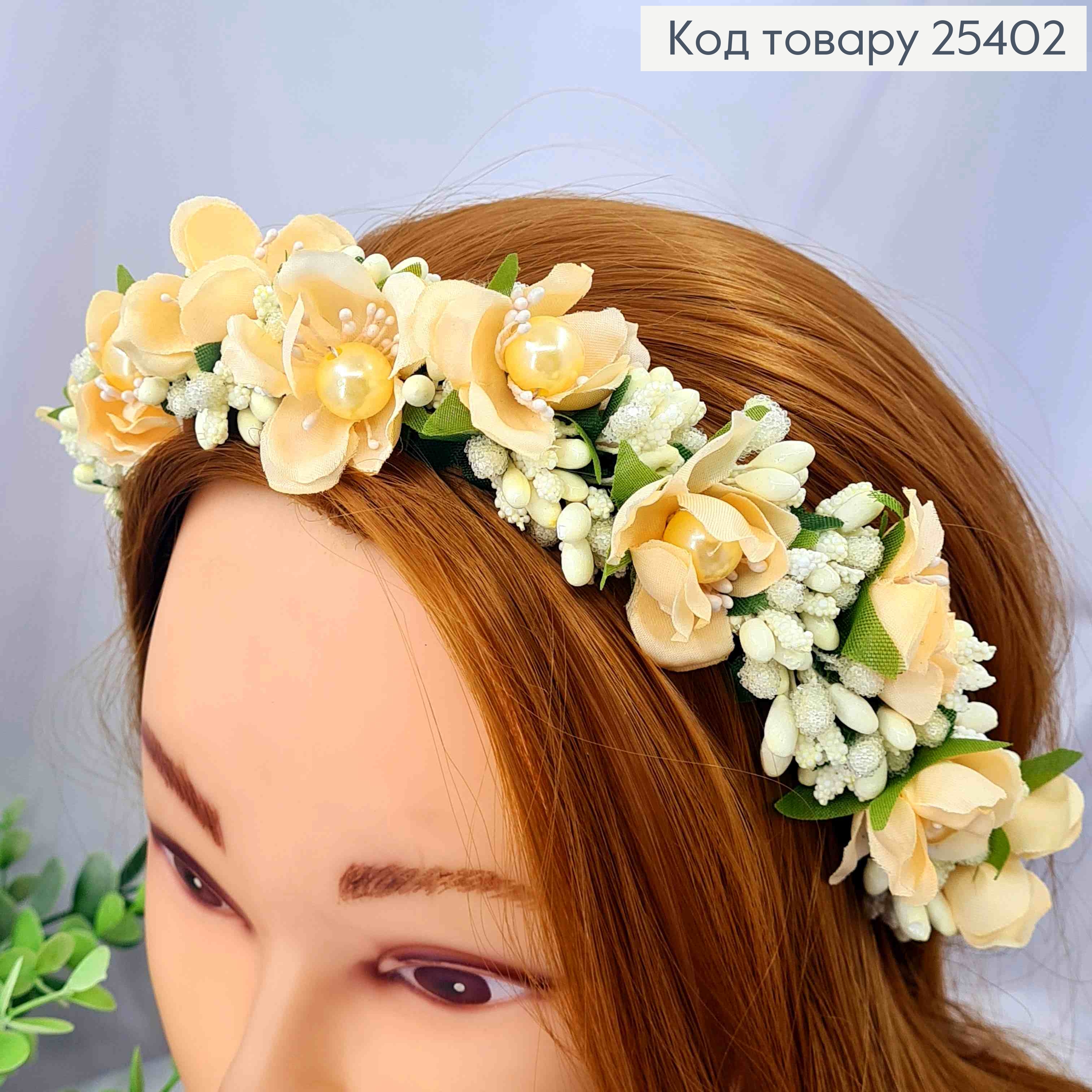 Обруч - венок, металл, БЛЕДНО-ПЕРСИКОВЫЕ Цветочки с Молочным приложением, ручная работа, Украина