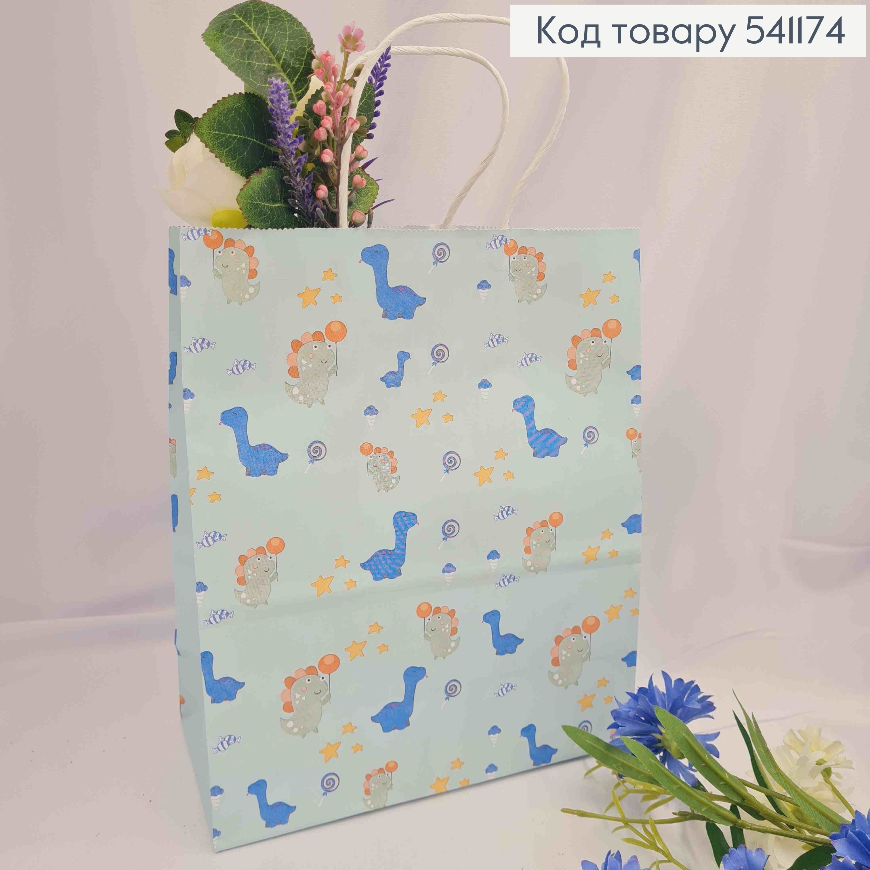Пакет крафтовый, 22*27*12см, Голубой с Динозаврами