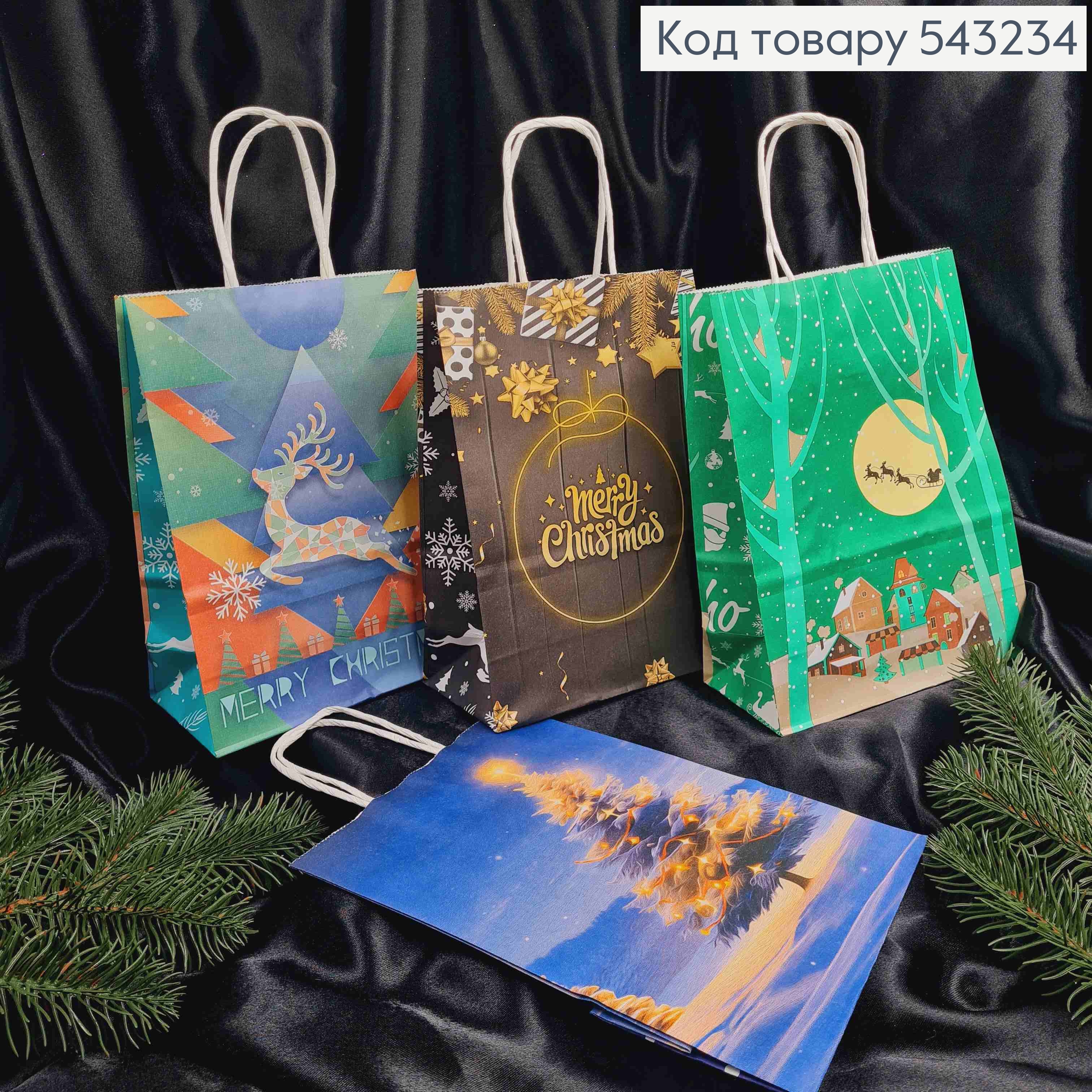 Пакет крафтовый Новогодний "Merry Christmas" в ассортименте, 22*16*8см