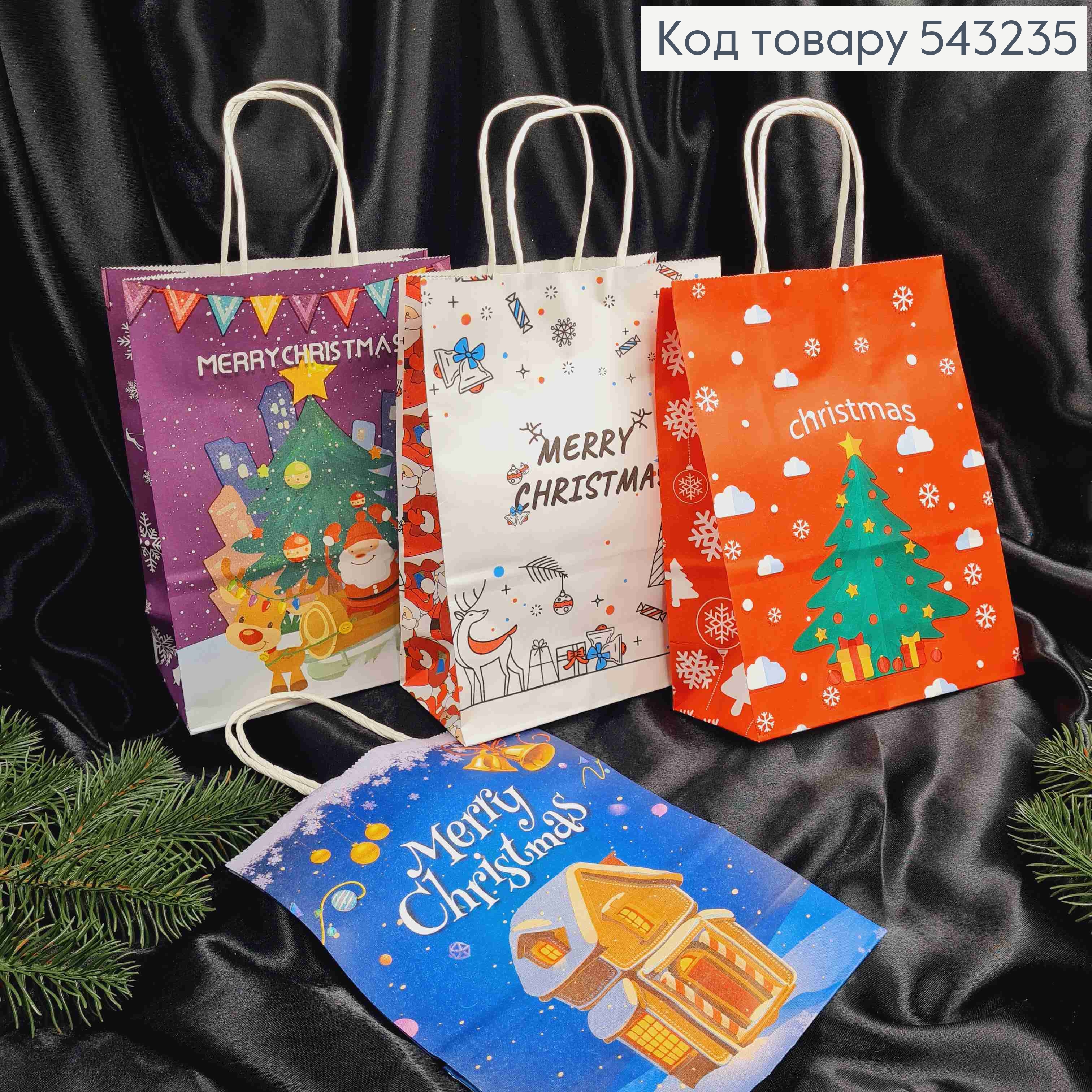 Пакет крафтовый Новогодний "Merry Christmas" в ассортименте, 22*16*8см