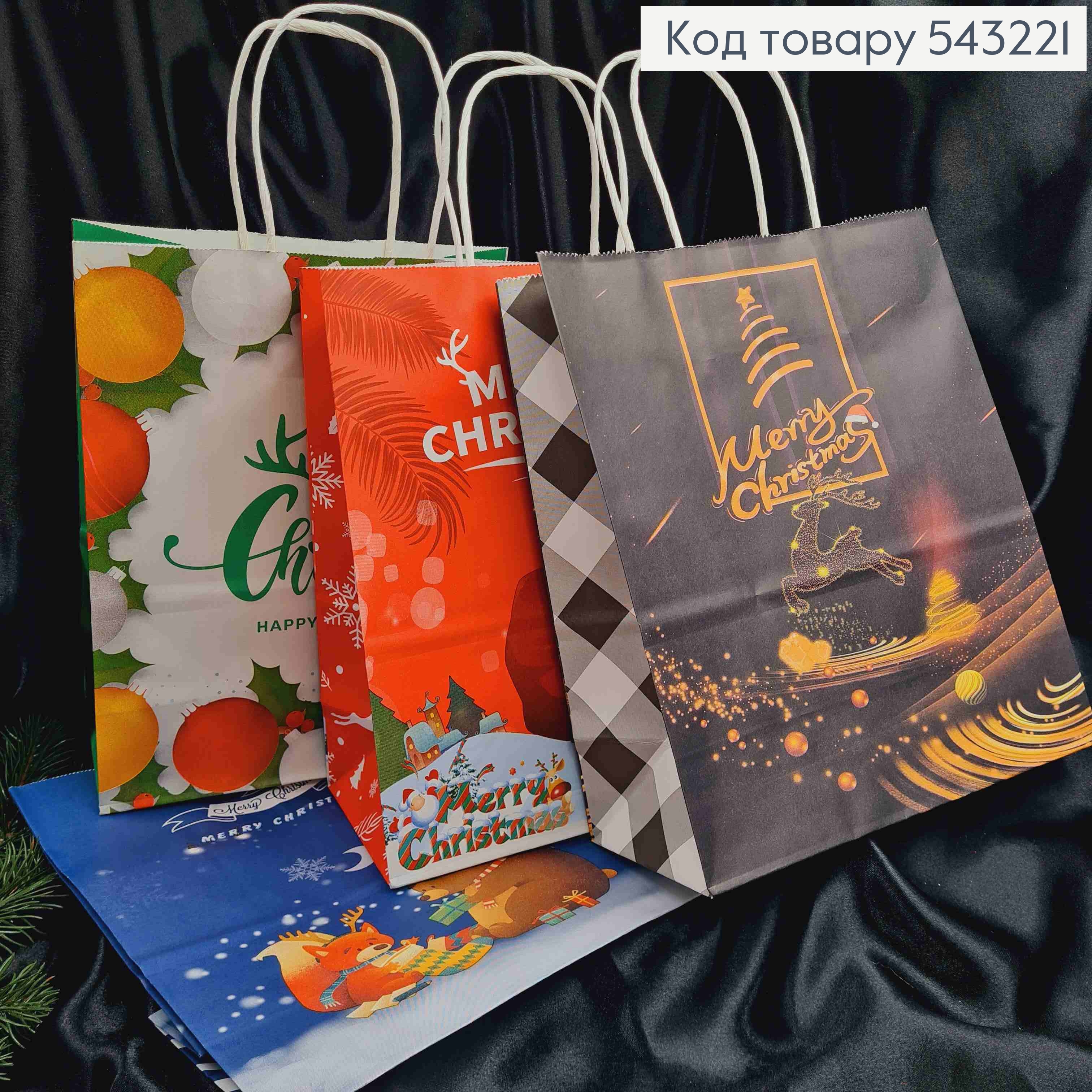 Пакет бумажный с Новогодним принтом Merry Christmas, 32*26*12, в ассортименте 543263 фото