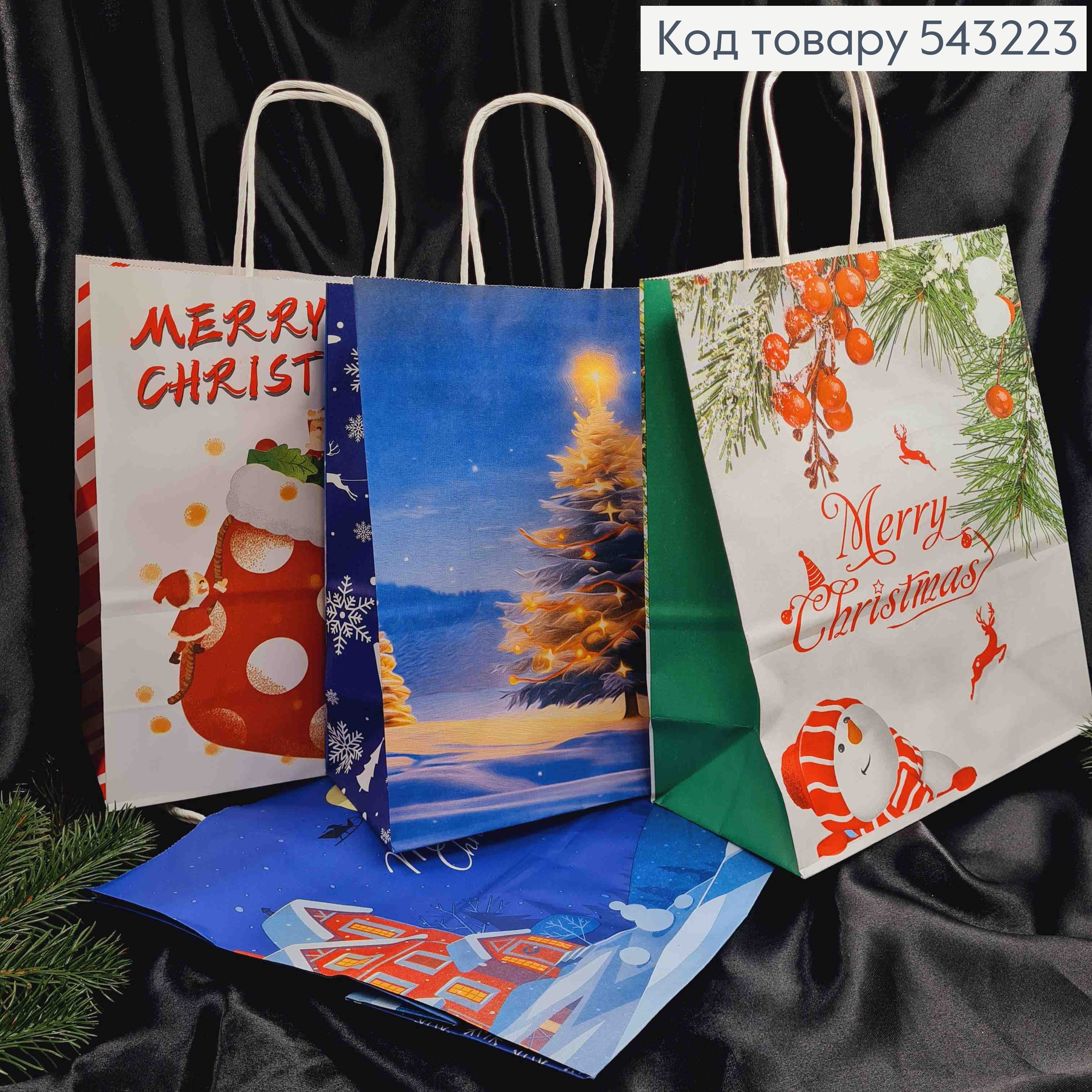 Пакет крафтовый Новогодний "Merry Christmas" в ассортименте, 27*21,5*11см
