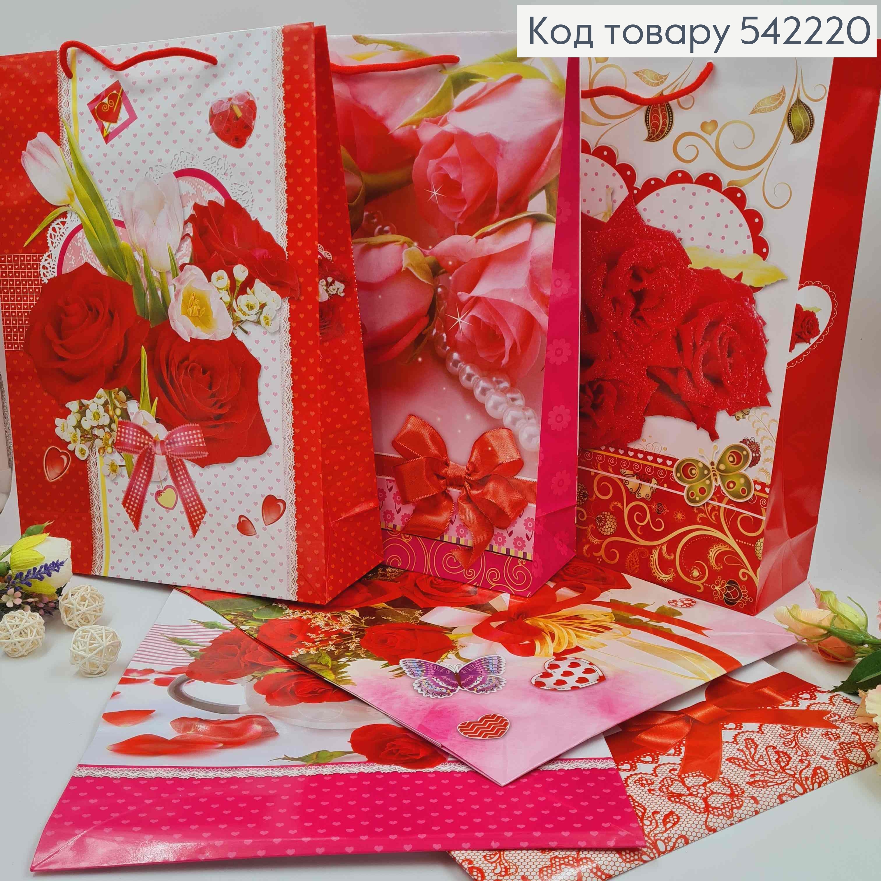 Пакет бумажный, "Букет роз" с кружевом, в ассорт. 38*27*9см