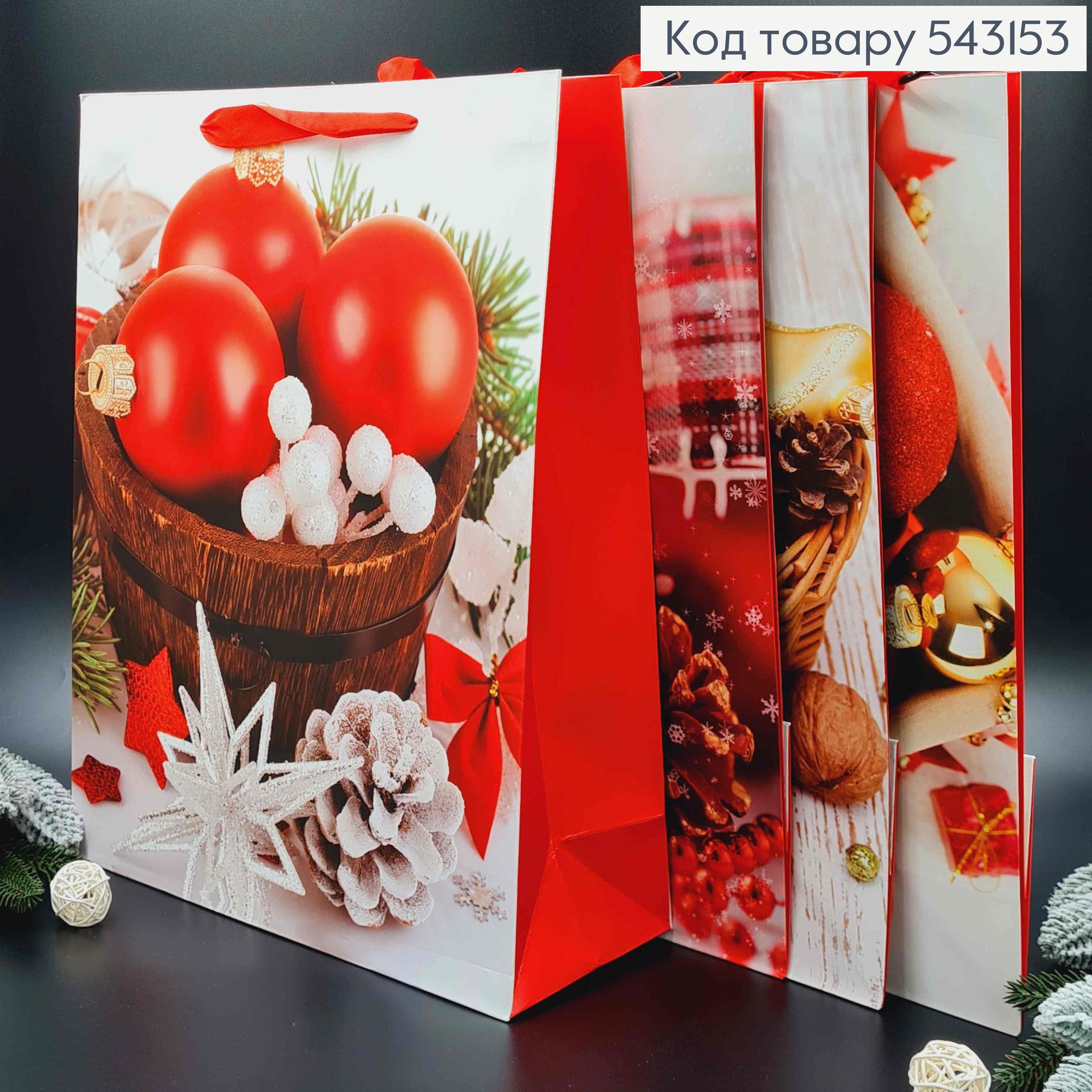 Пакет бумажный, "Новогодние игрушки в красных тонах" в ассорт. 30*40*12 см
