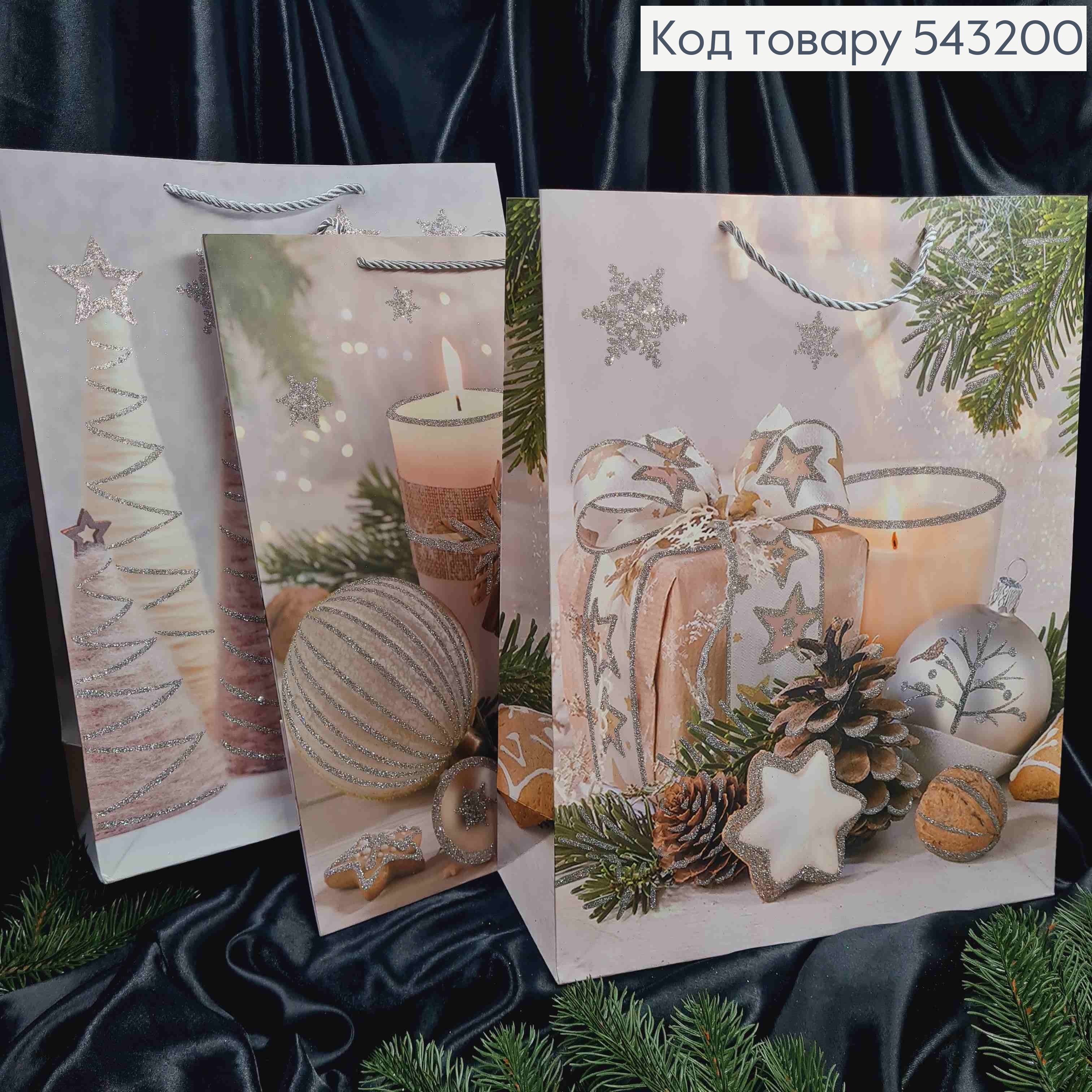 Пакет бумажный с Новогодним принтом и Блеском, 32*26*10см, в ассортименте 543258 фото
