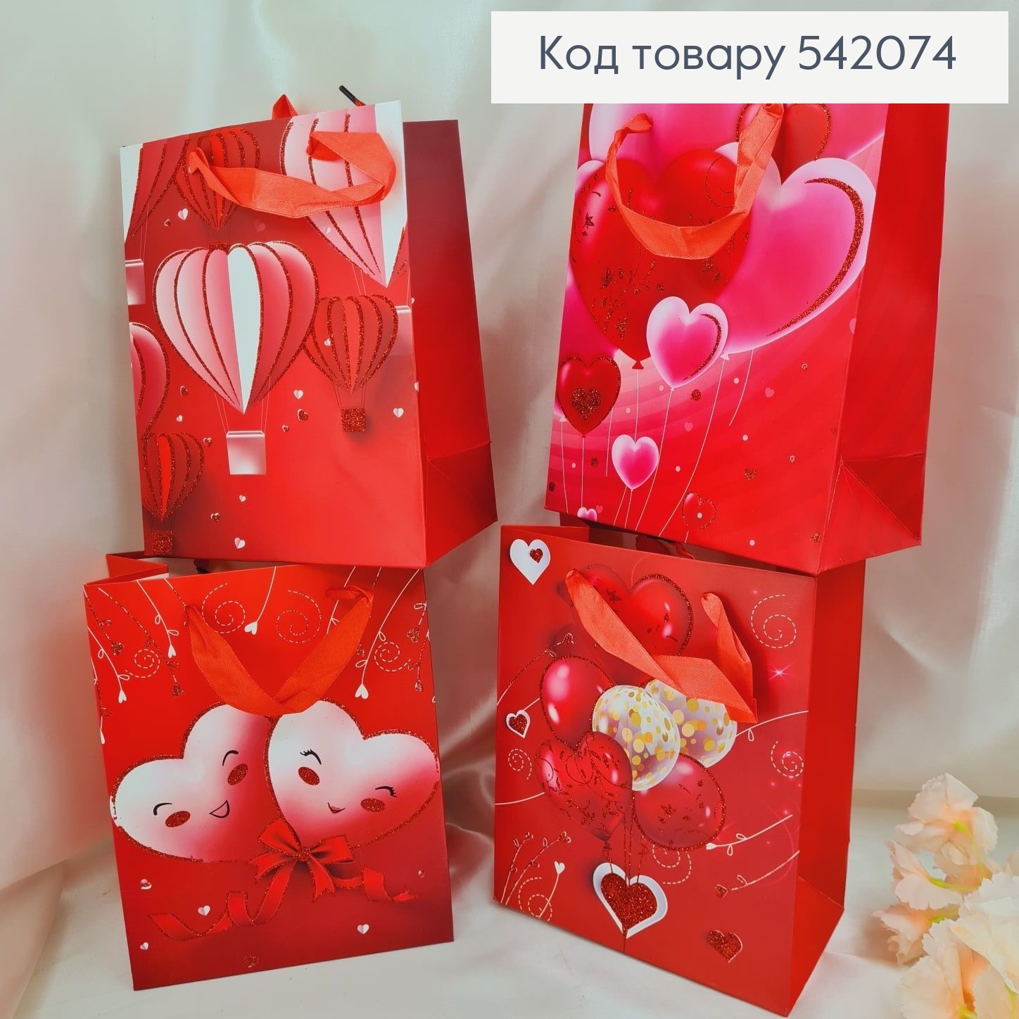 Пакет бумажный средний Сердца блеск 23х18 см в ас.