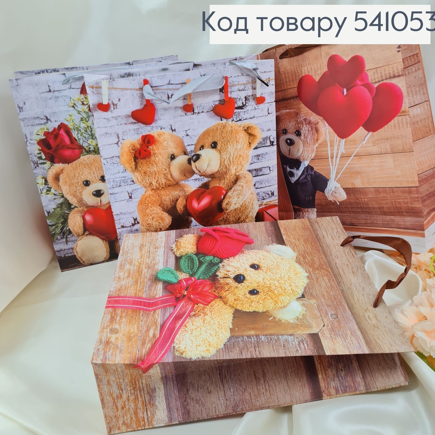 Пакет бумажный средний Мишка с сердцем 32х25,5см в асс.