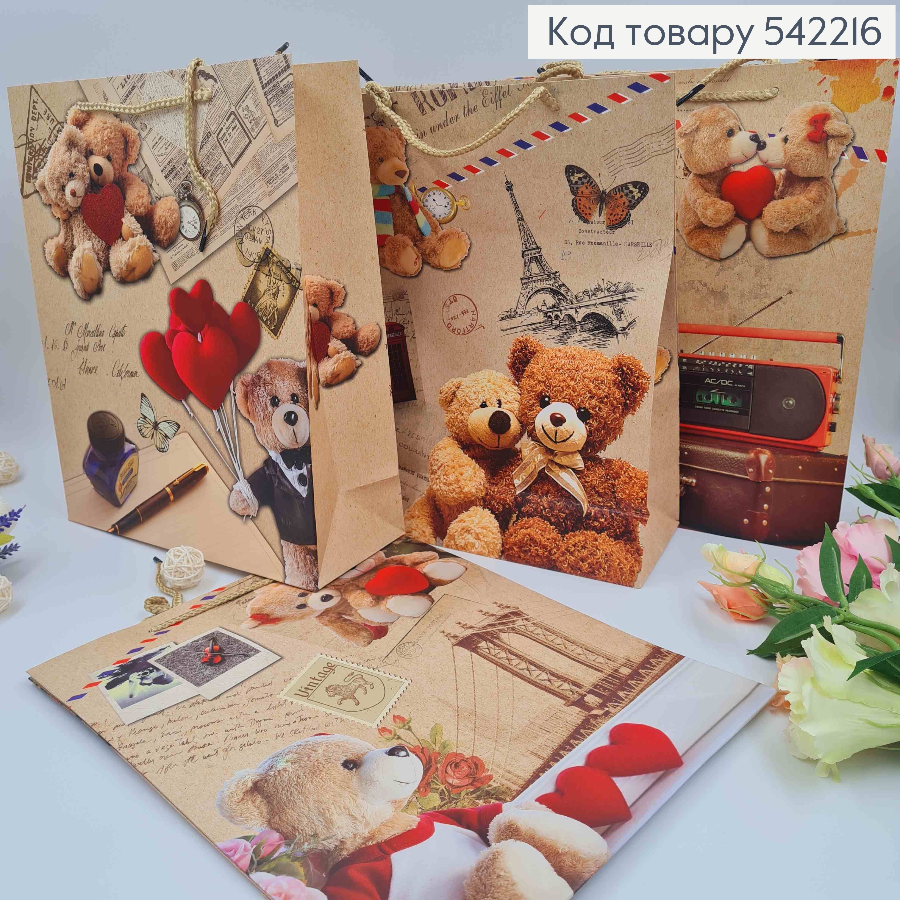 Пакет бумажный, "Мишки в крафтовом стиле", в ассорт. 32*26*10см