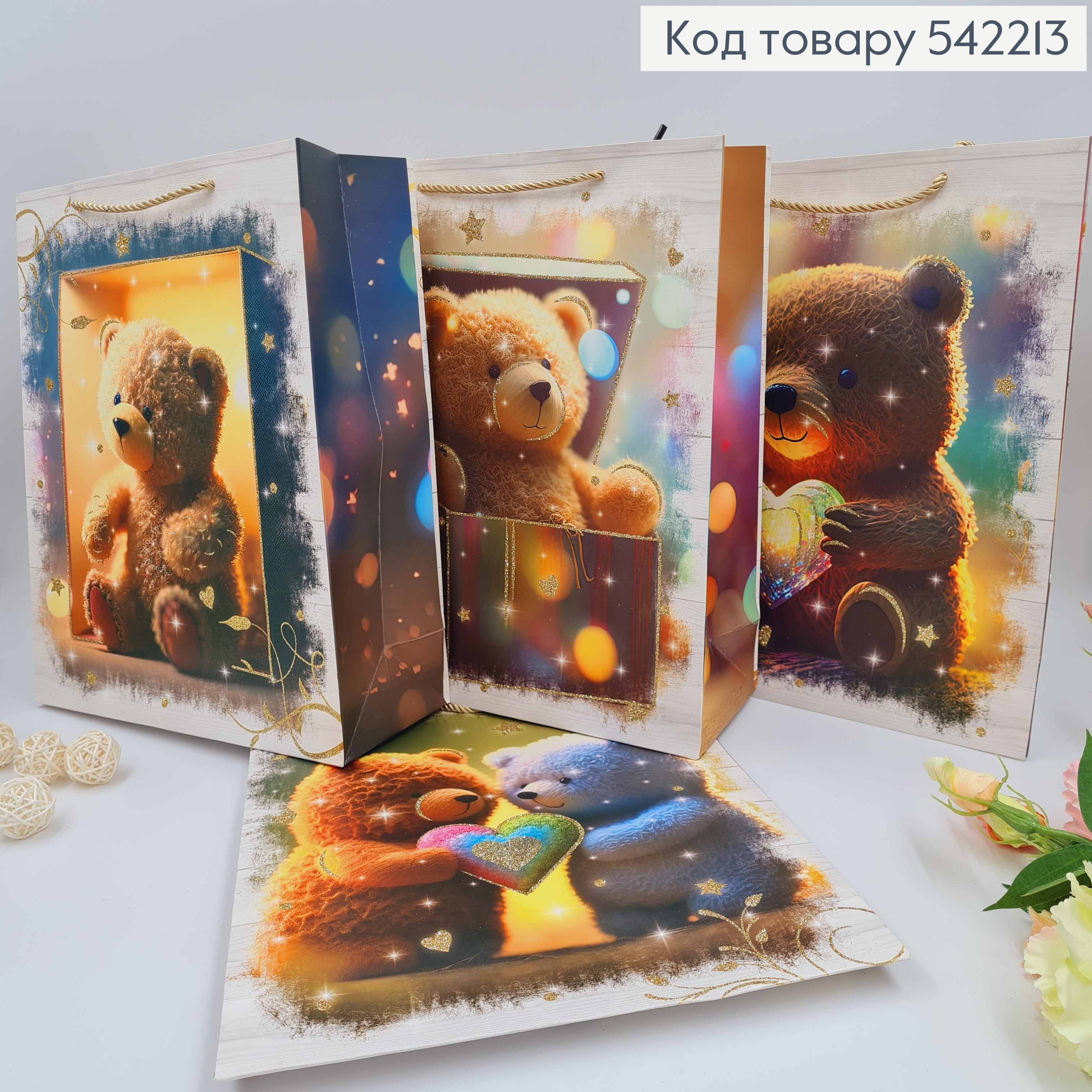 Пакет бумажный, "Медвежата" с блеском, в ассорт. 32*26*10см