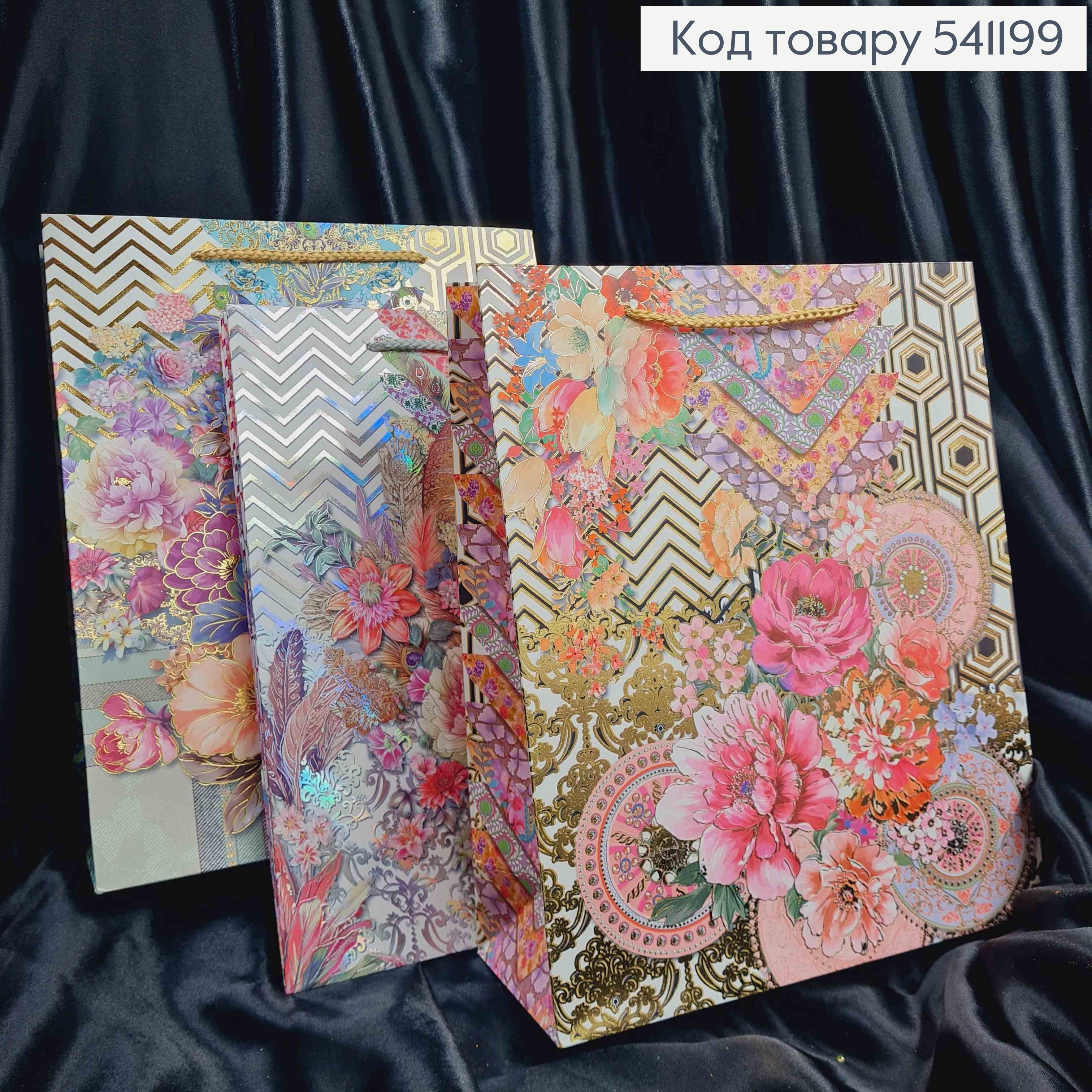 Пакет бумажный с цветами, 32*26*10см, в ассортименте