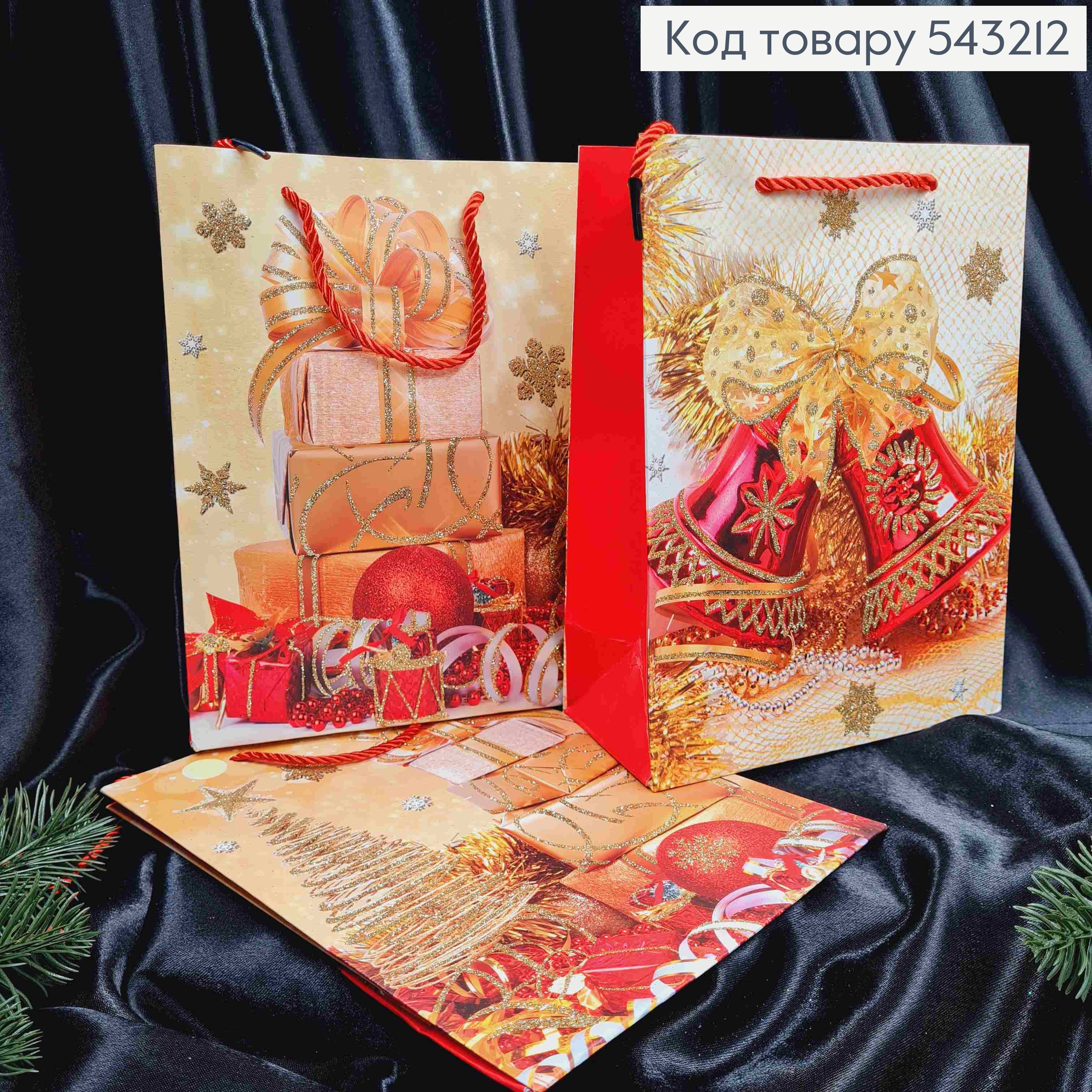 Пакет бумажный Красный с Новогодним принтом, 32*26*12, в ассортименте 543262 фото