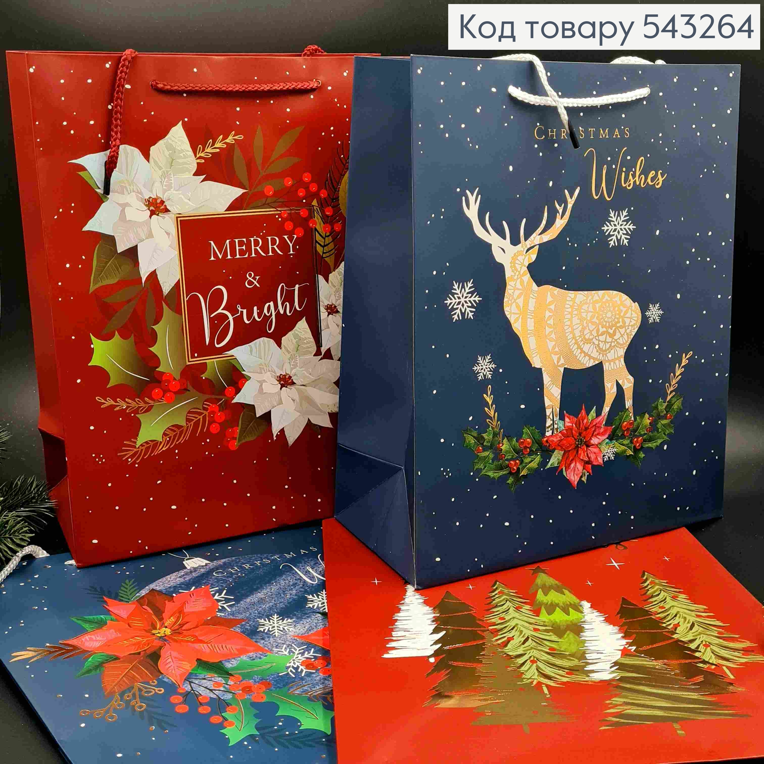 Пакет бумажный с Новогодним принтом Merry Christmas, 42*31*12, в ассортименте 543266 фото