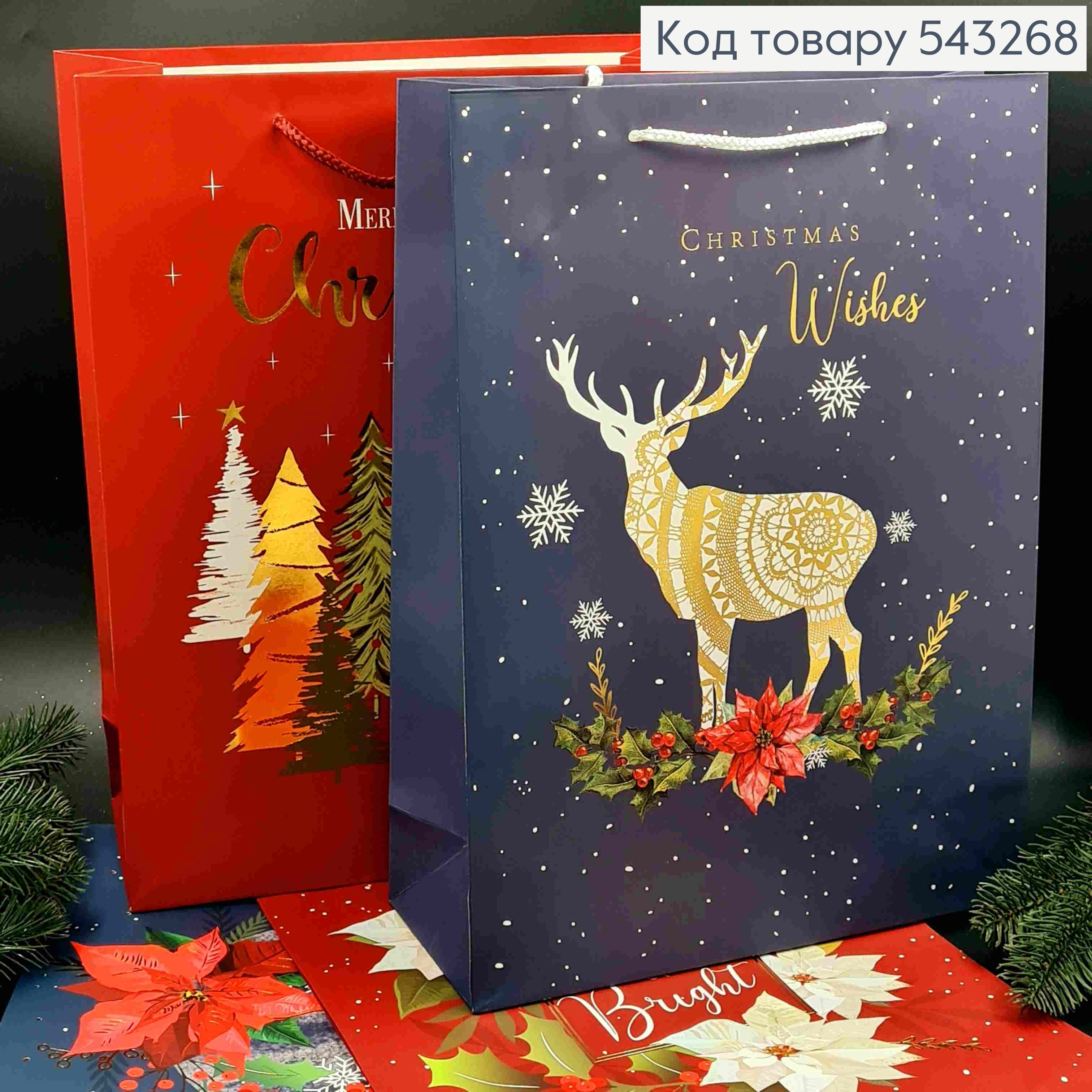 Пакет бумажный с Новогодним принтом "Christmas Wishes", "Merry Christmas", 32*26*12, в ассортименте 543264 фото