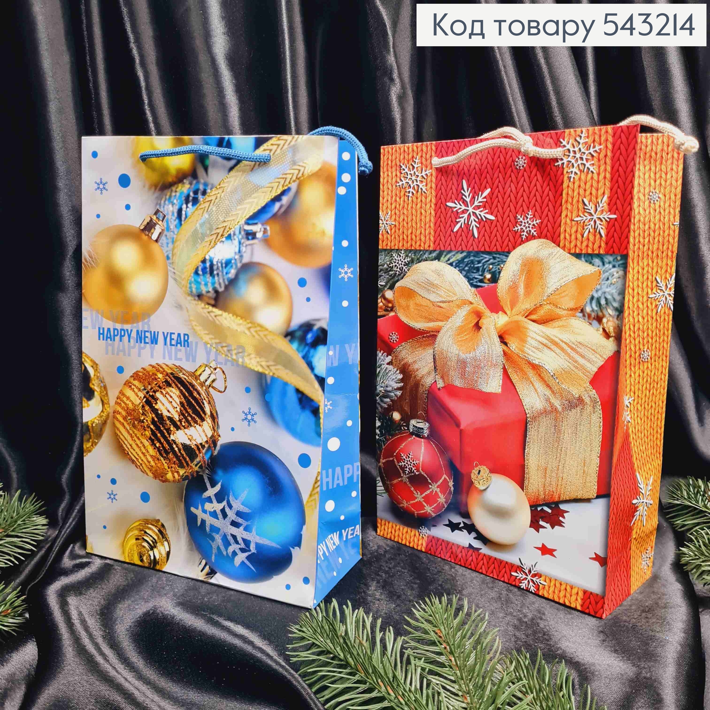 Пакет бумажный с Новогодними игрушками "Happy New Year", 26*16*11см, в ассортименте