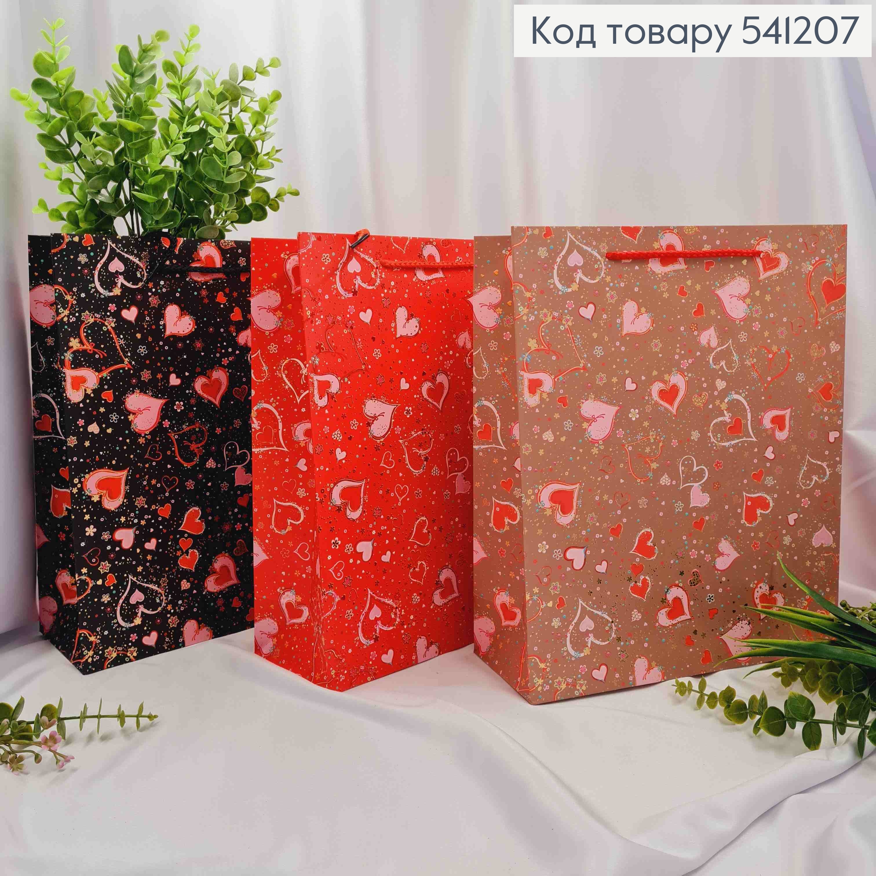 Пакет бумажный с принтом "СЕРДЕЧКА", 32*26*10см, в ассортименте