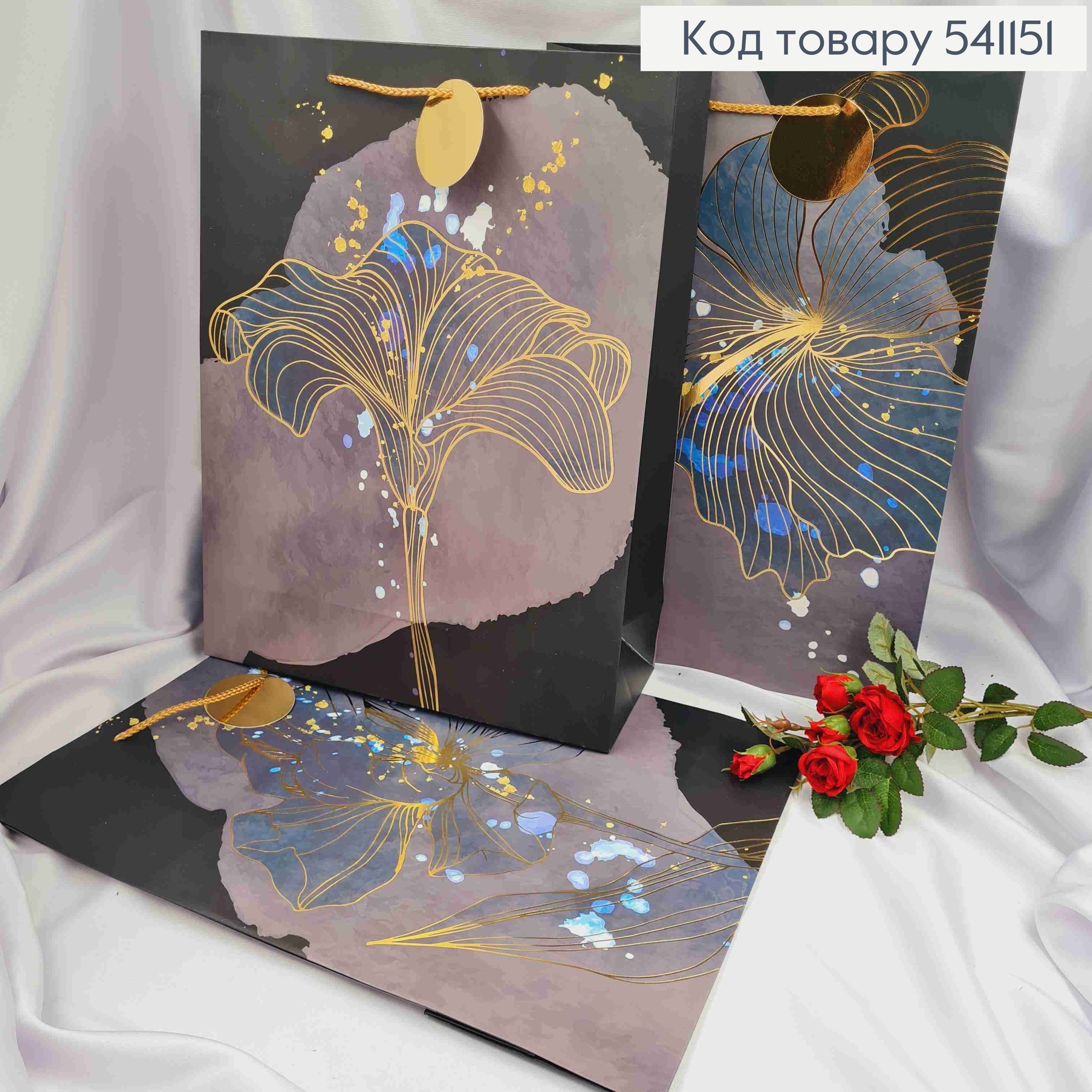 Пакет бумажный, принт с Золотым Цветком, 41*31*12см, в ассорт.