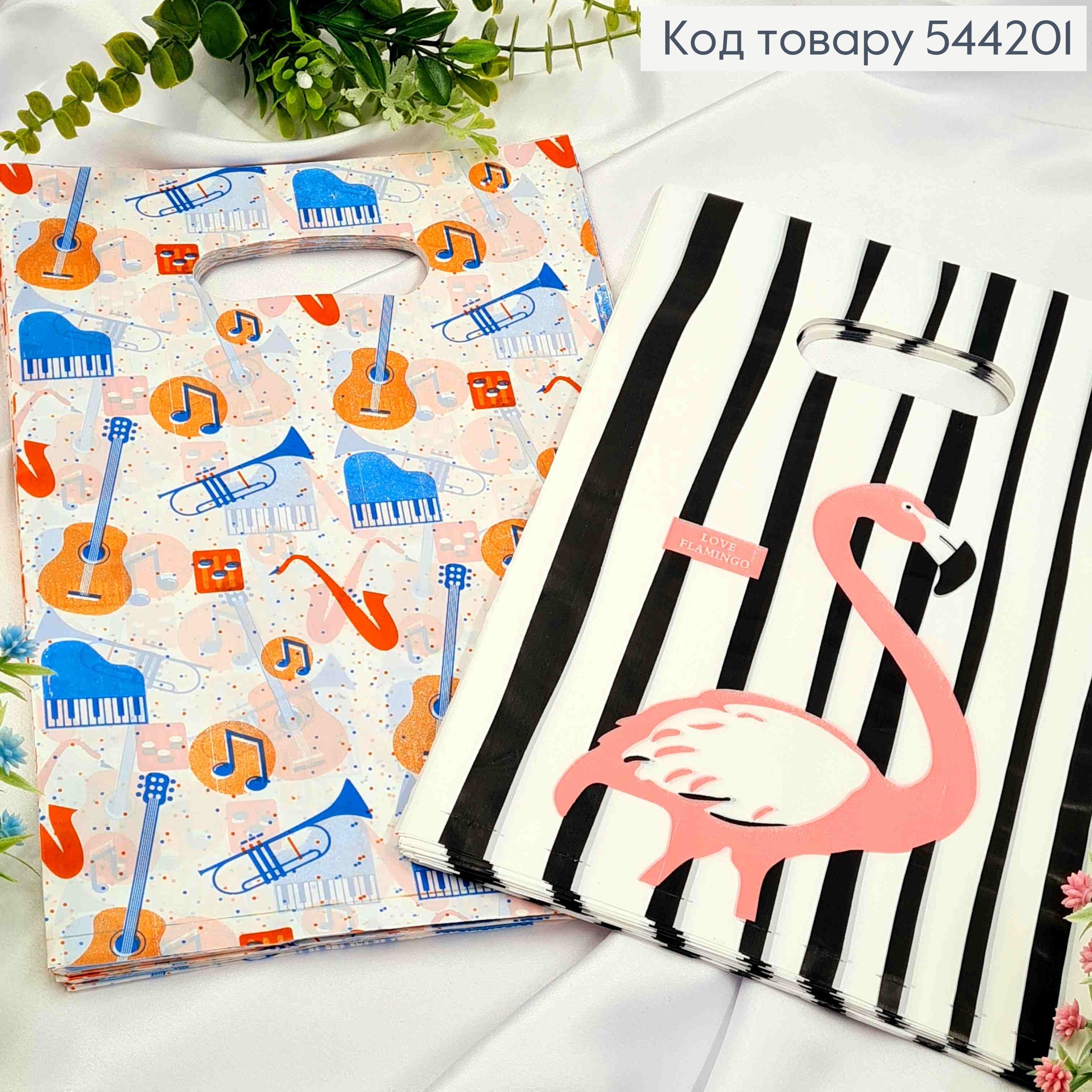 Пакет полиэтиленовый с принтом "Музыкальные инструменты" и "Flamingo" в ассортименте, 100шт/уп, 30*20см