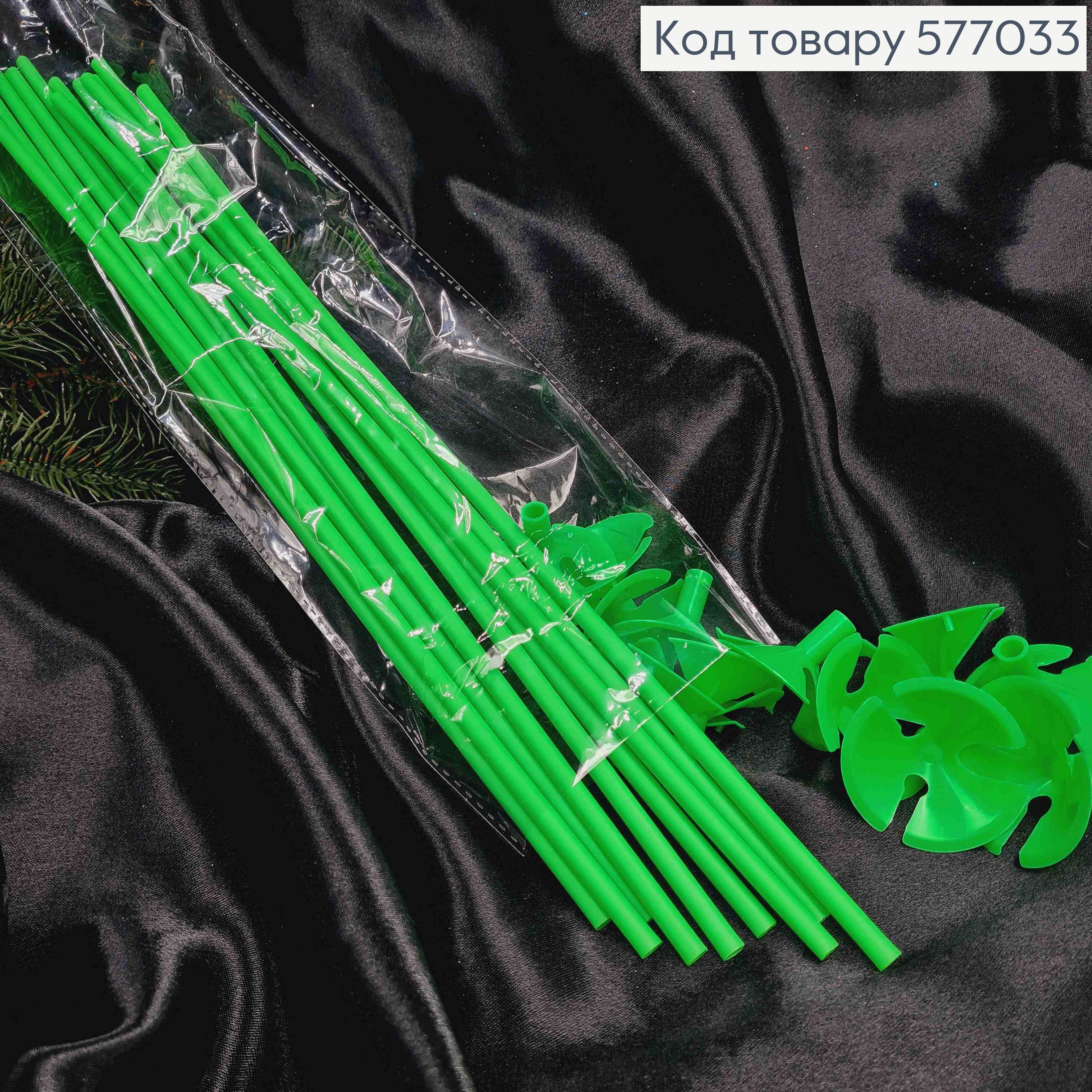 Набор палочек с держателем для воздушных шаров, (12шт) ЗЕЛЕНОГО цвета, пластиковая 41см.
