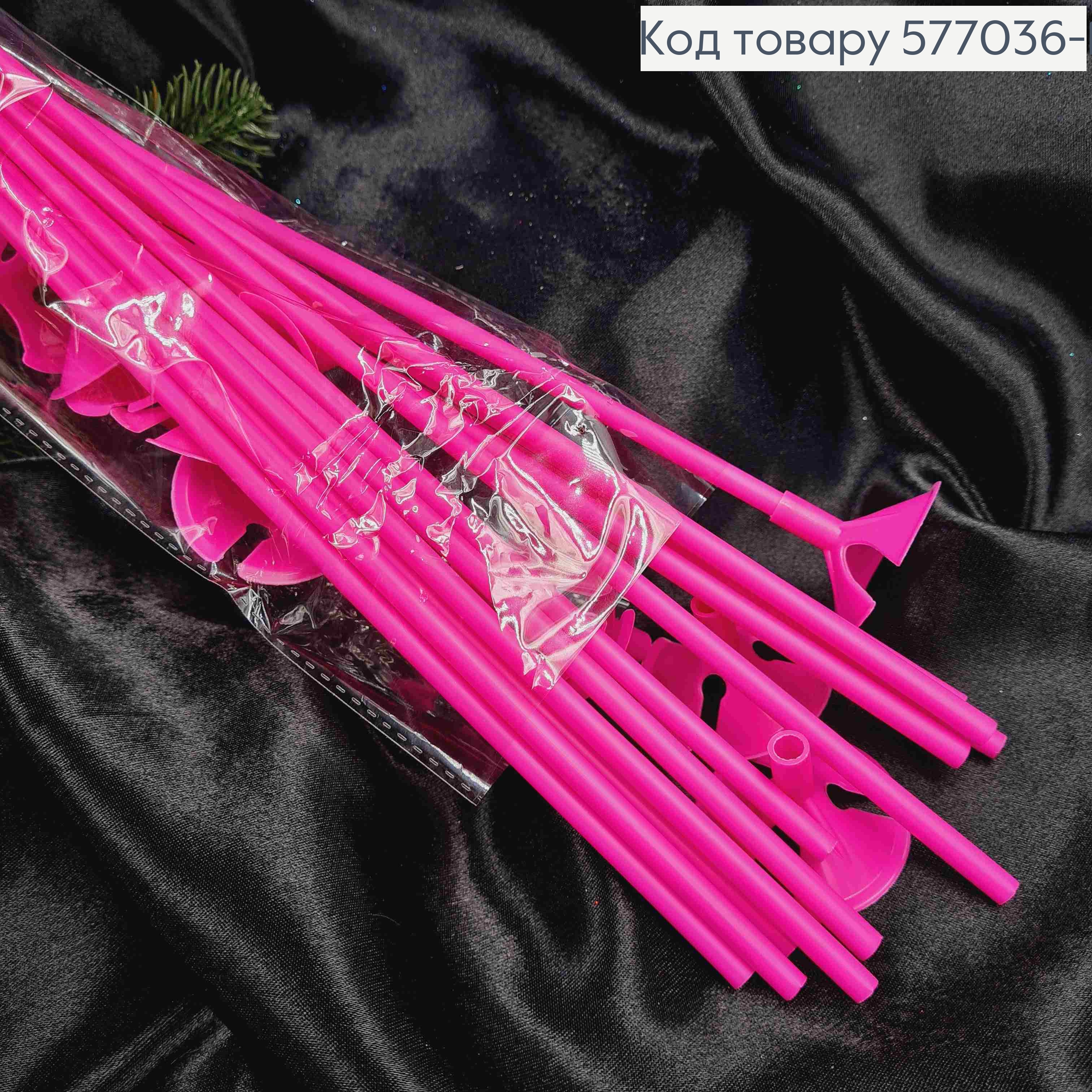 Набор палочек с держателем для воздушных шаров, (12шт) РОЗОВОГО цвета, пластиковая 41см.
