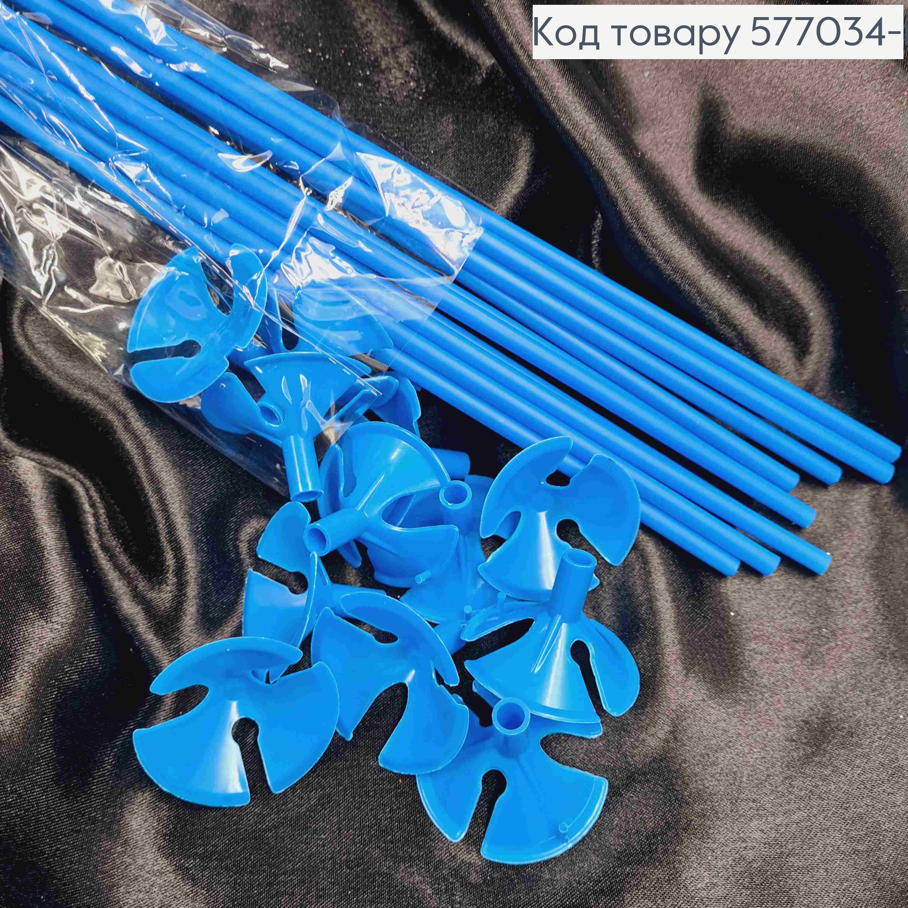 Набор палочек с держателем для воздушных шаров, (12шт) СИНЕГО цвета, пластиковая 41см.