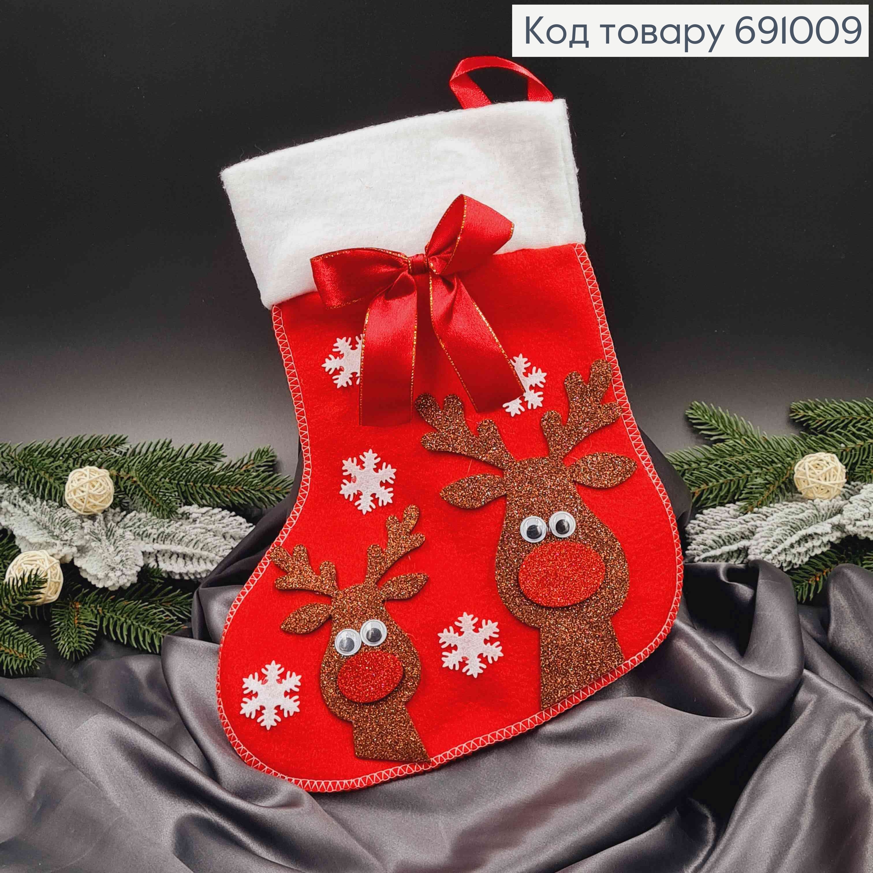 Чулок Рождественский, Красного цвета, со снежинками и оленями, 30*21см