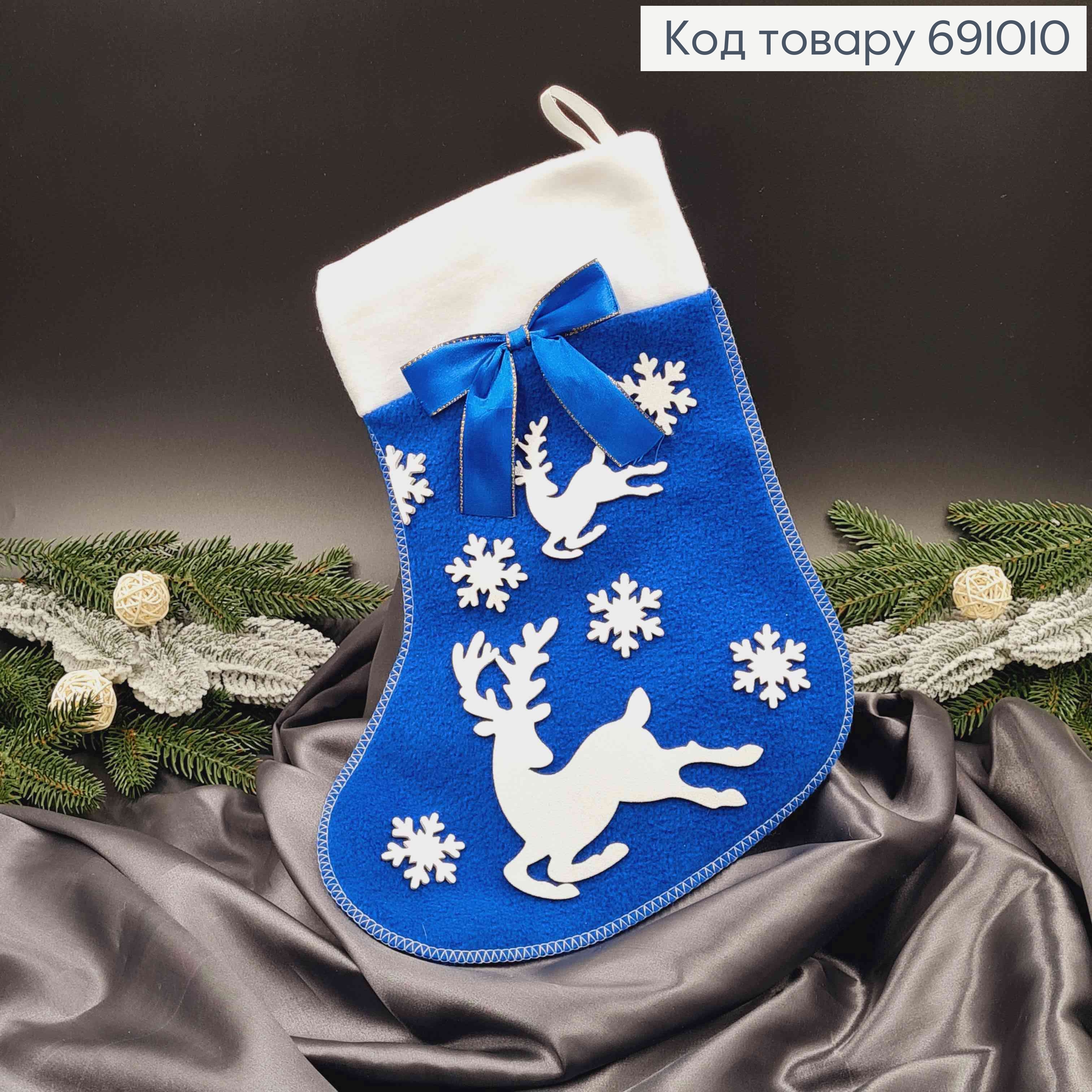 Чулок Рождественский, Синего цвета, со снежинками и оленями, 30*21см 691008 фото