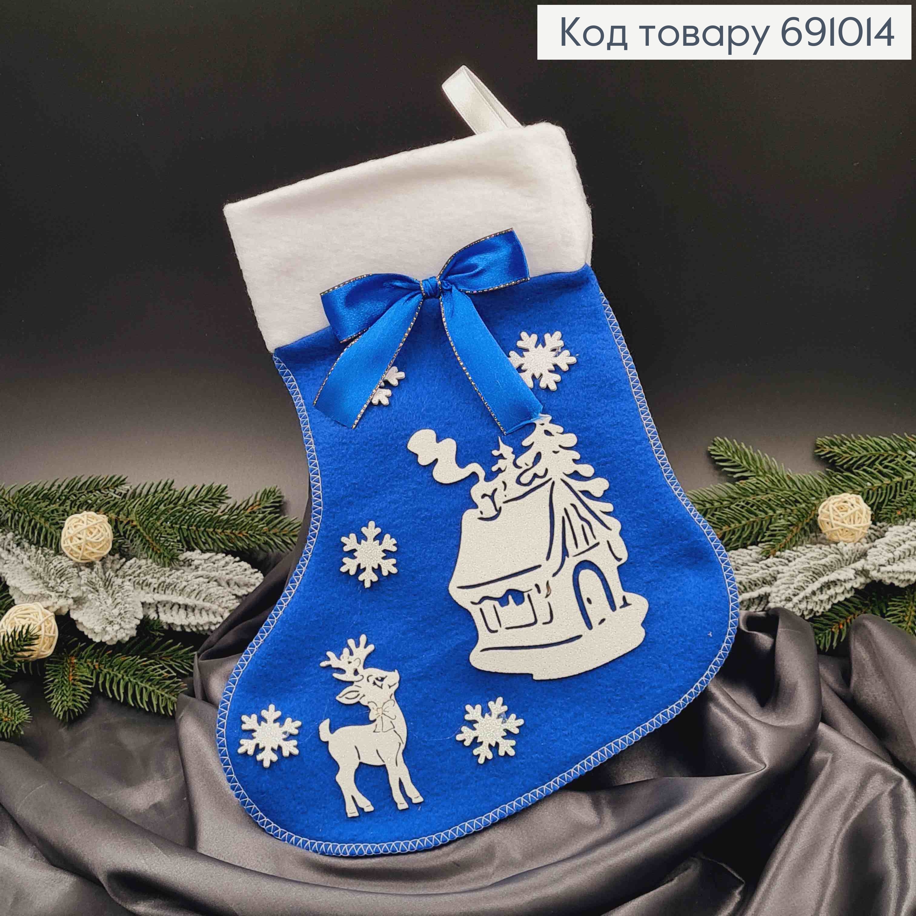 Чулок Рождественский, Синего цвета, блестящими со снежинками и оленями, 32*23см 691010 фото