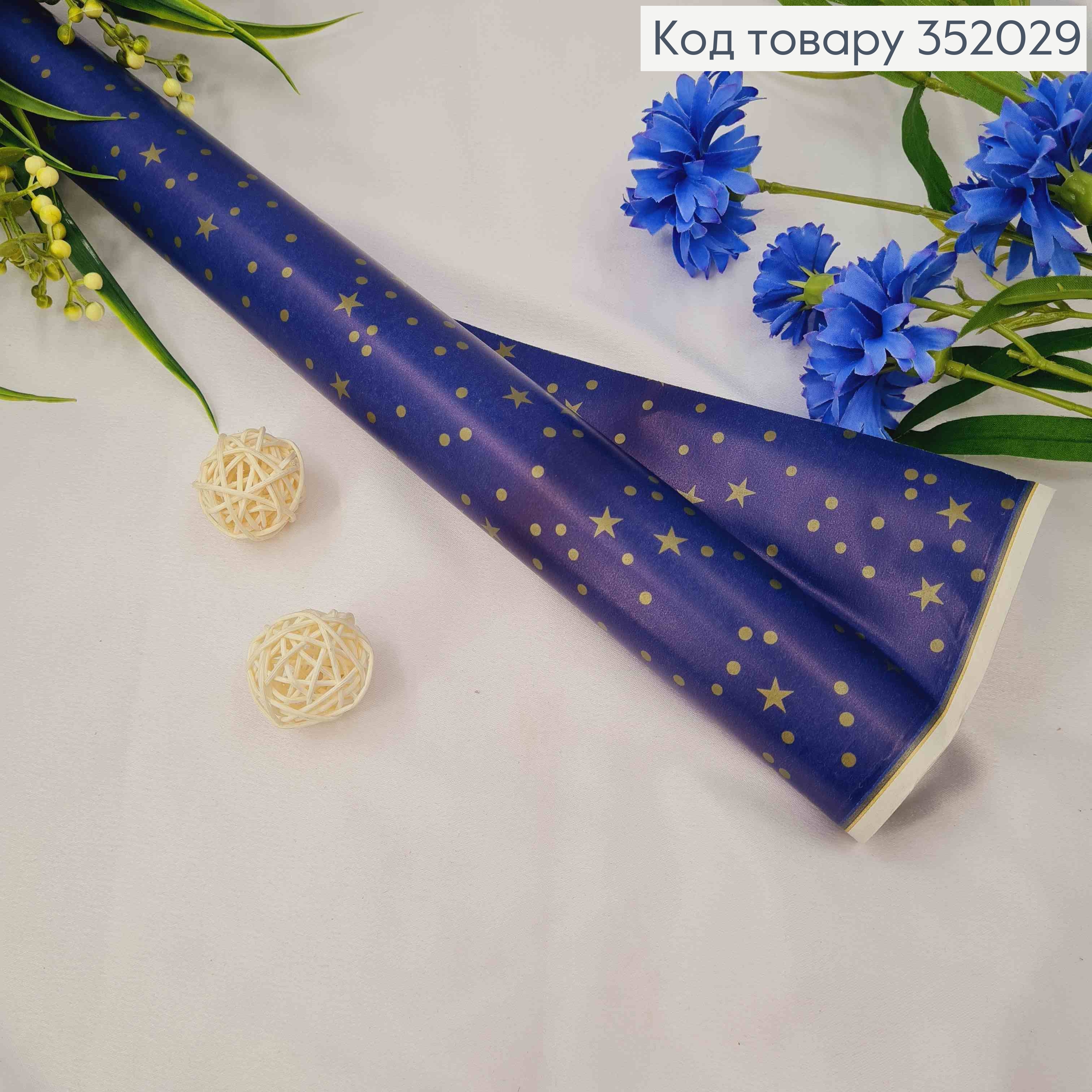 Бумага мелованная новогодняя "Золотые звезды на синем" на индиго, рулон 68см, длина 7метров