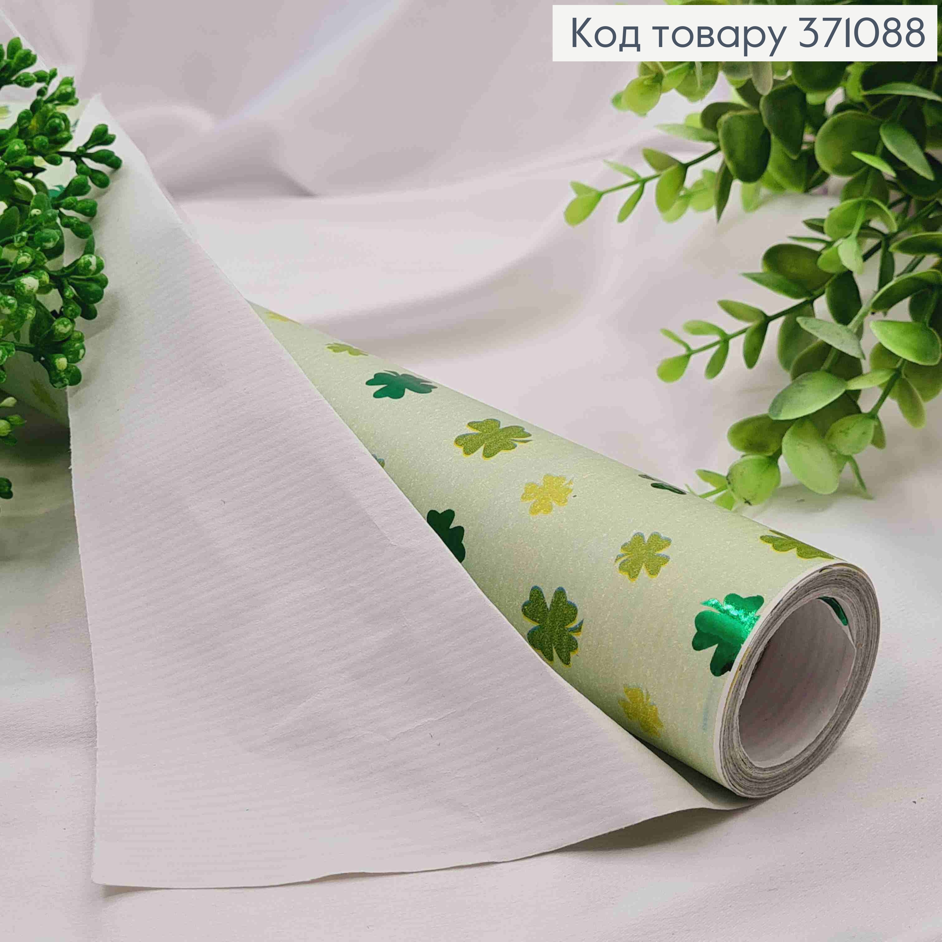 Бумага в рулоне текстурная с принтом "Четырехлистник", Фисташкового цвета, 70см* 7метров
