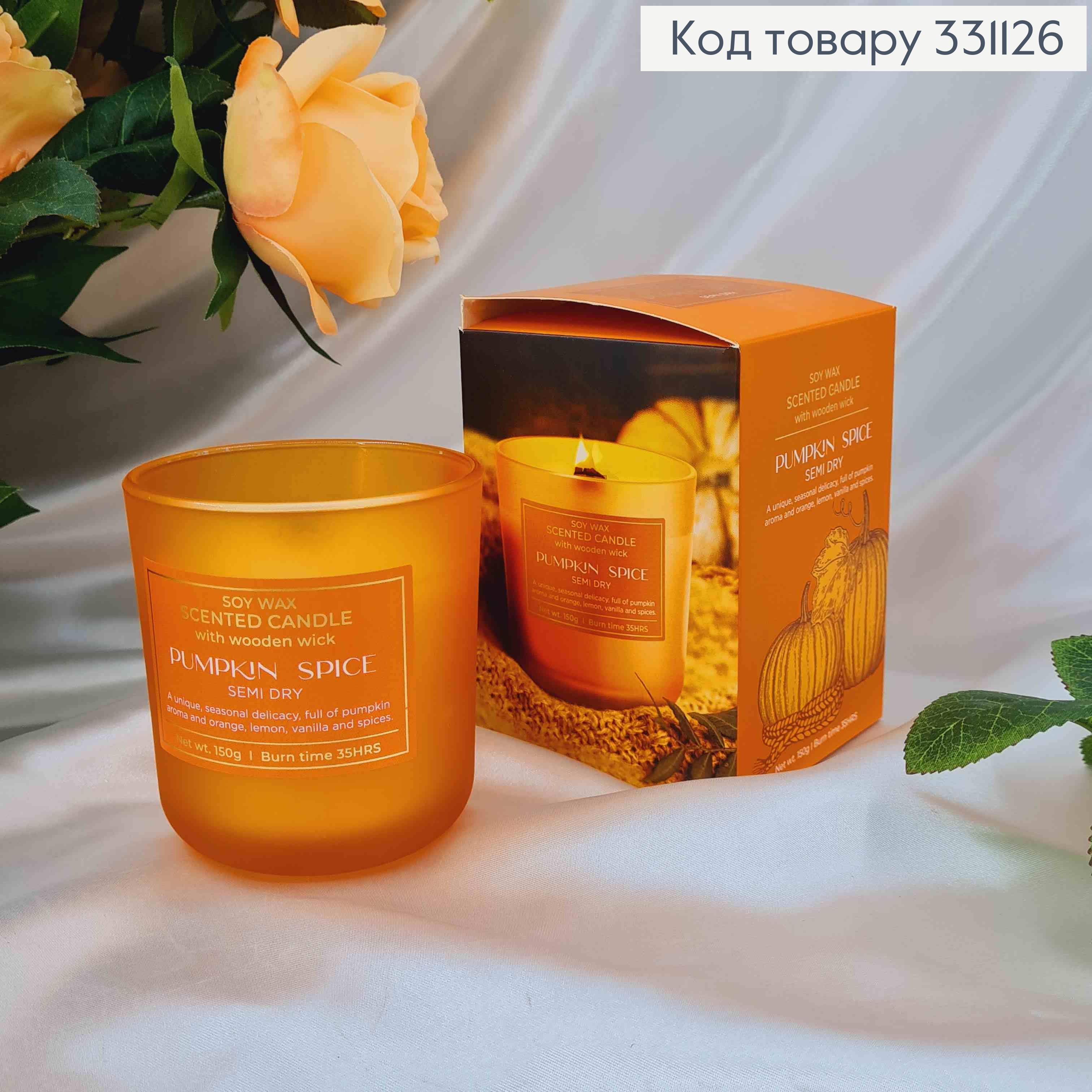 Парфюмерная СОЕВАЯ свеча стакан PUMPKIN SPICE semi dry с деревянным фитилем, 150г/35ч, bartek