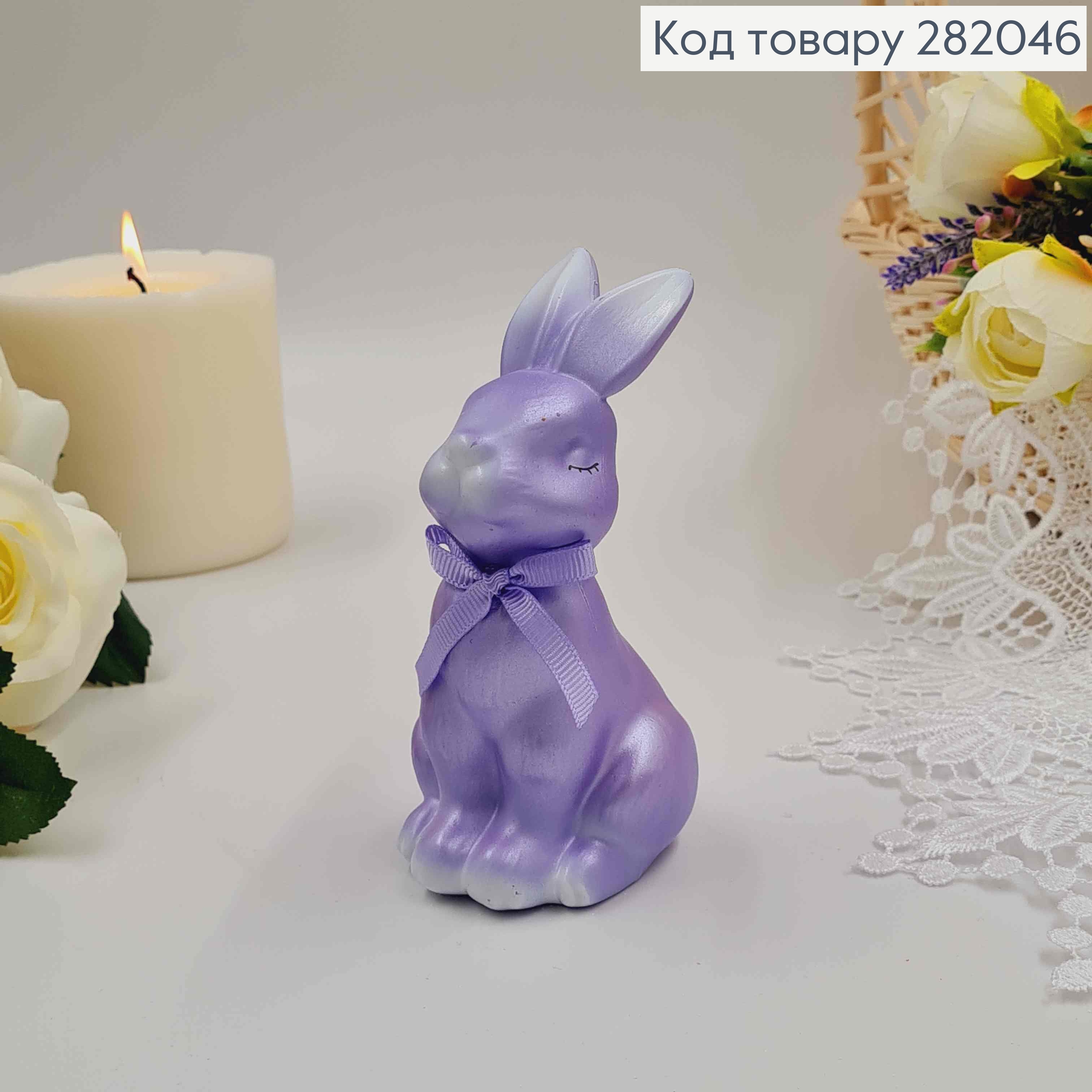 Пасхальная фигура ЗАЯЦ, ЛИЛОВОГО цвета, с бантиком, 12*6,5см